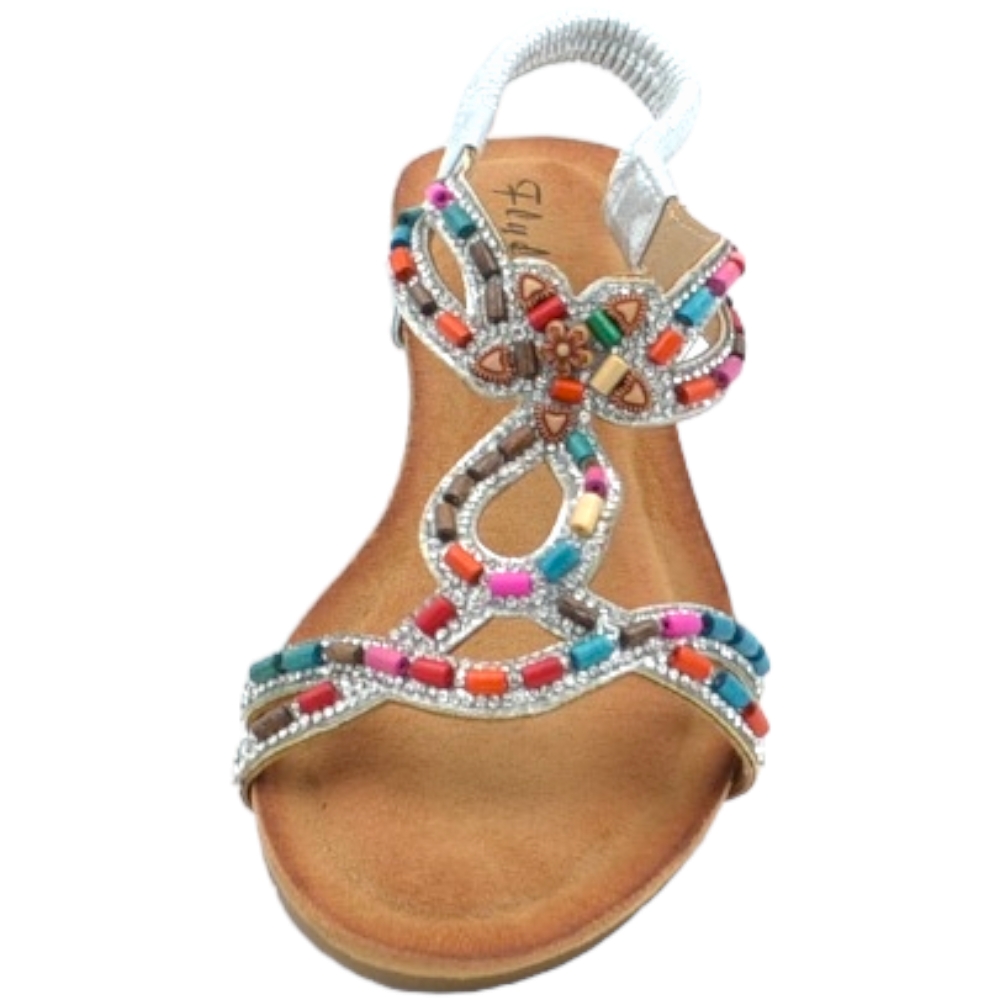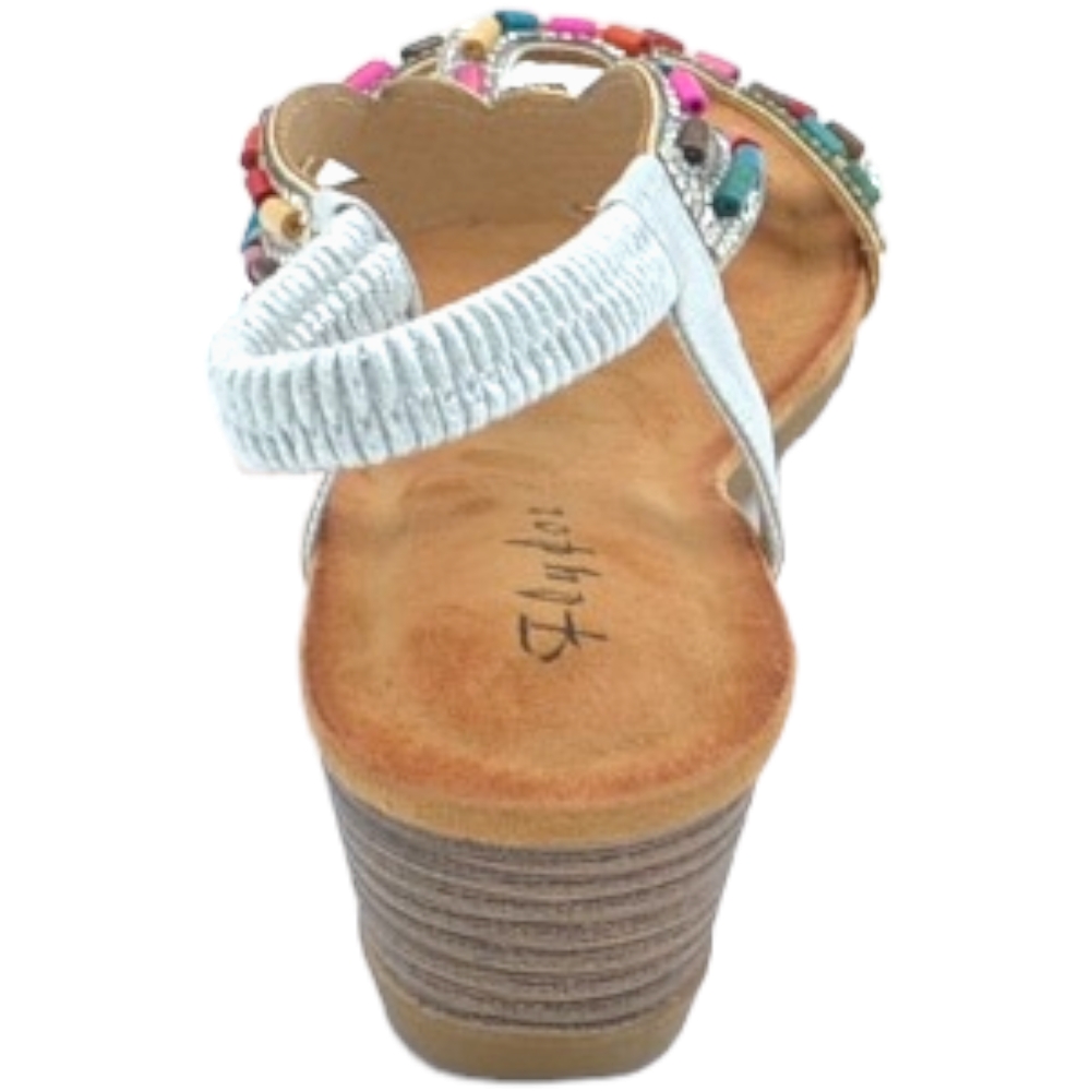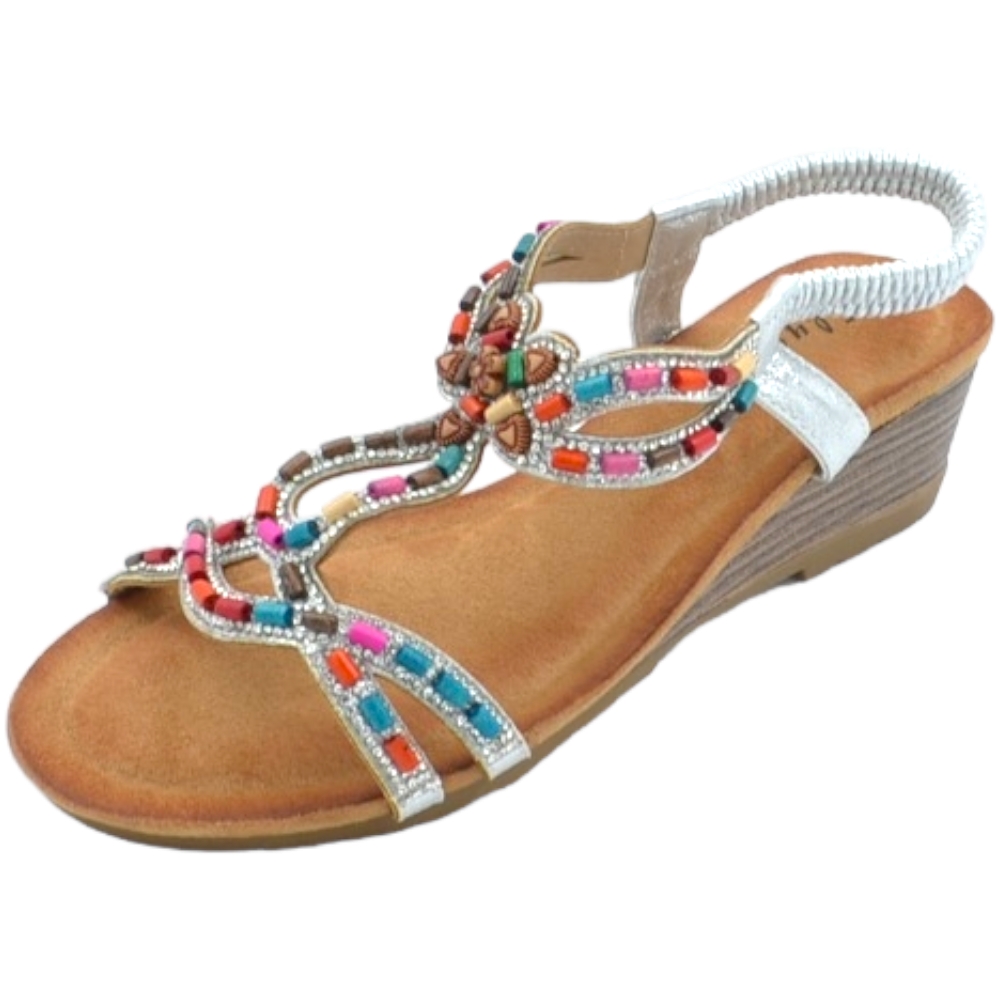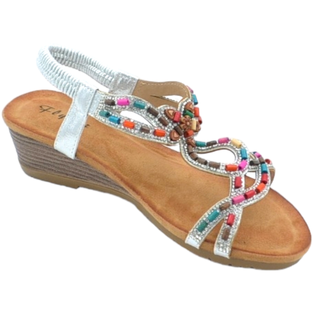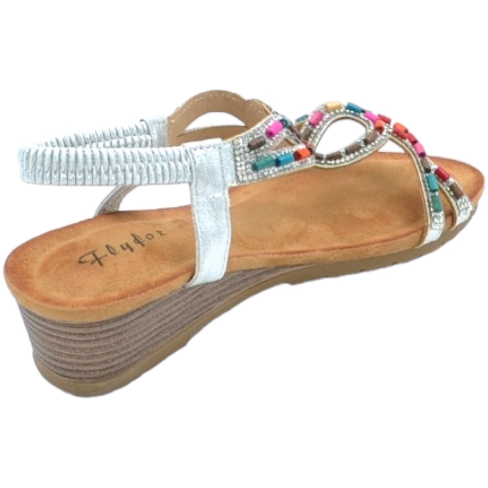 Sandalo gioiello argento pietre colorate tacco zeppa 3cm soletta memory fondo antiscivolo gomma cinturino caviglia