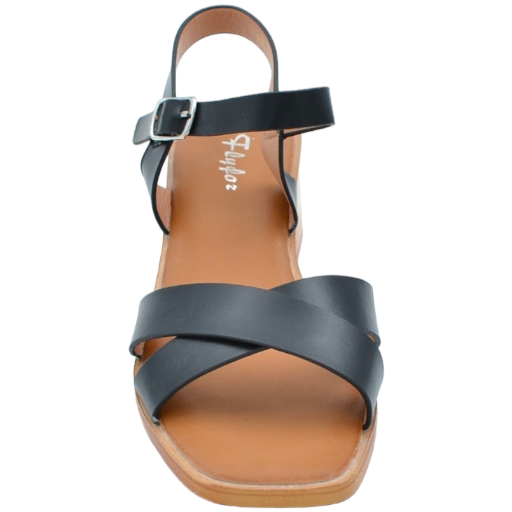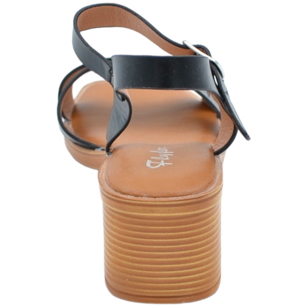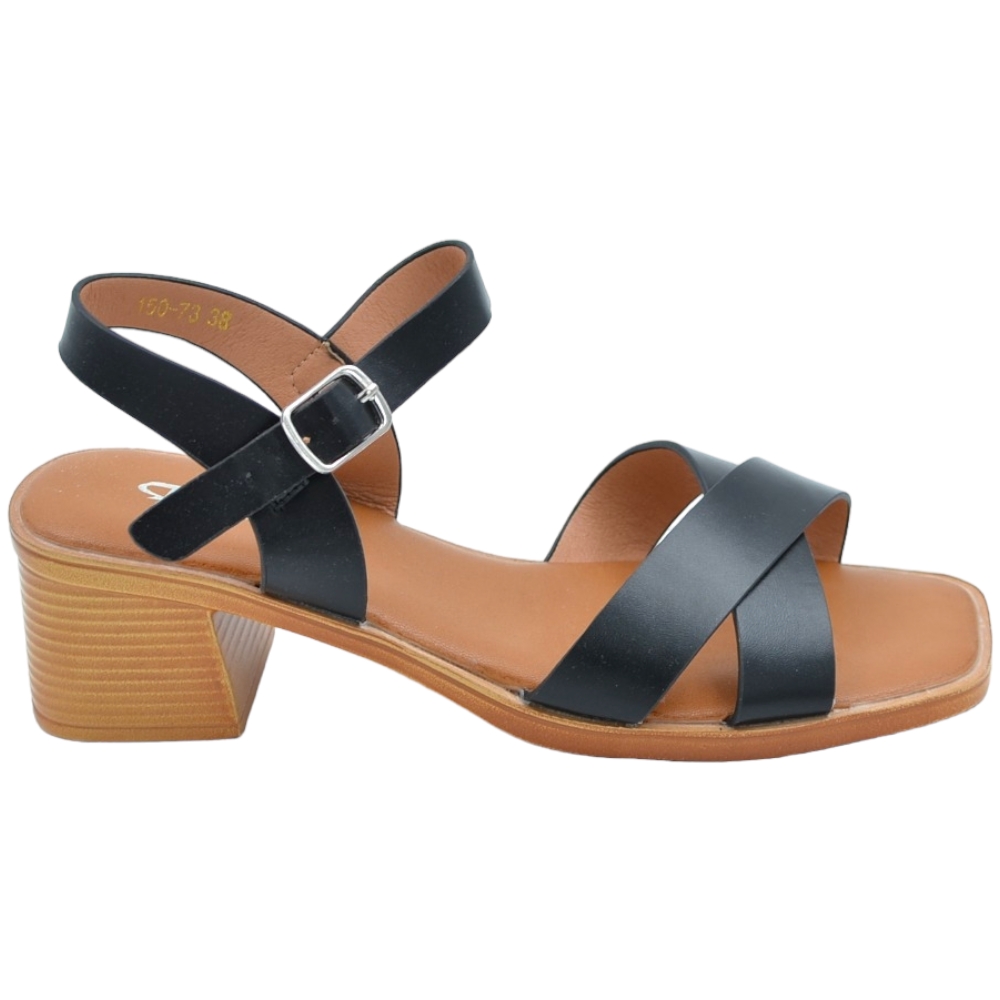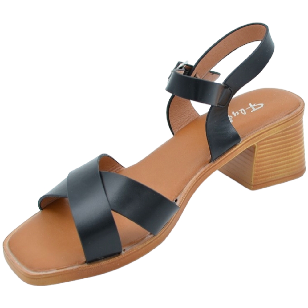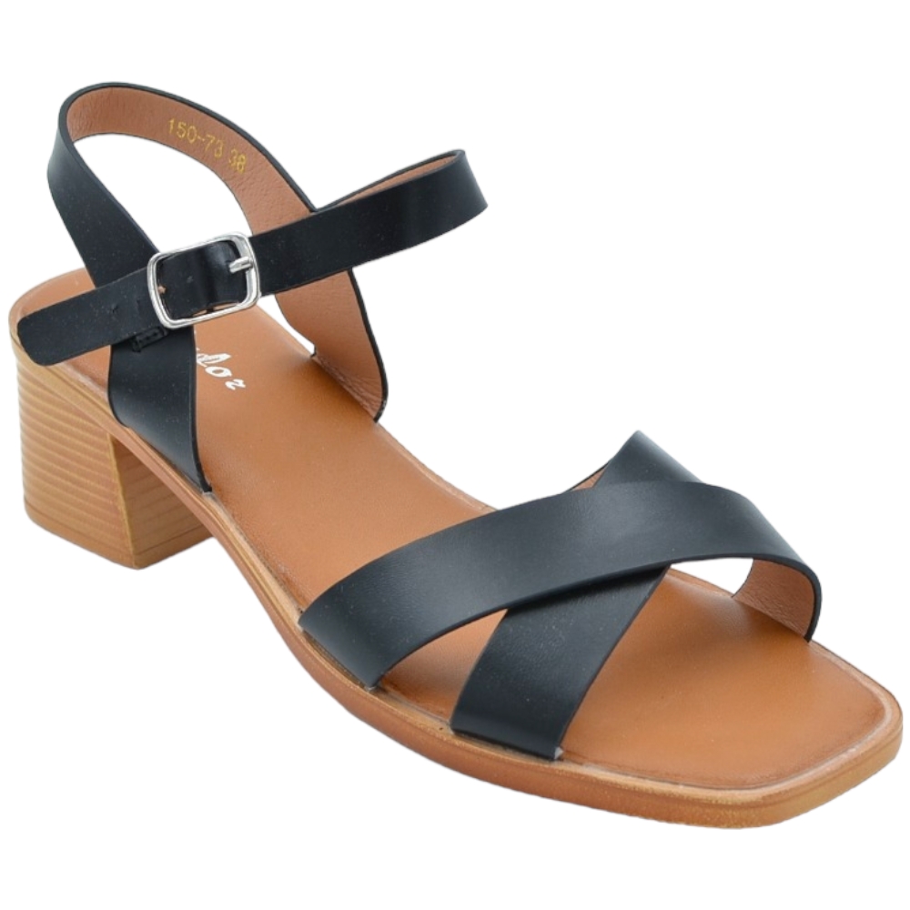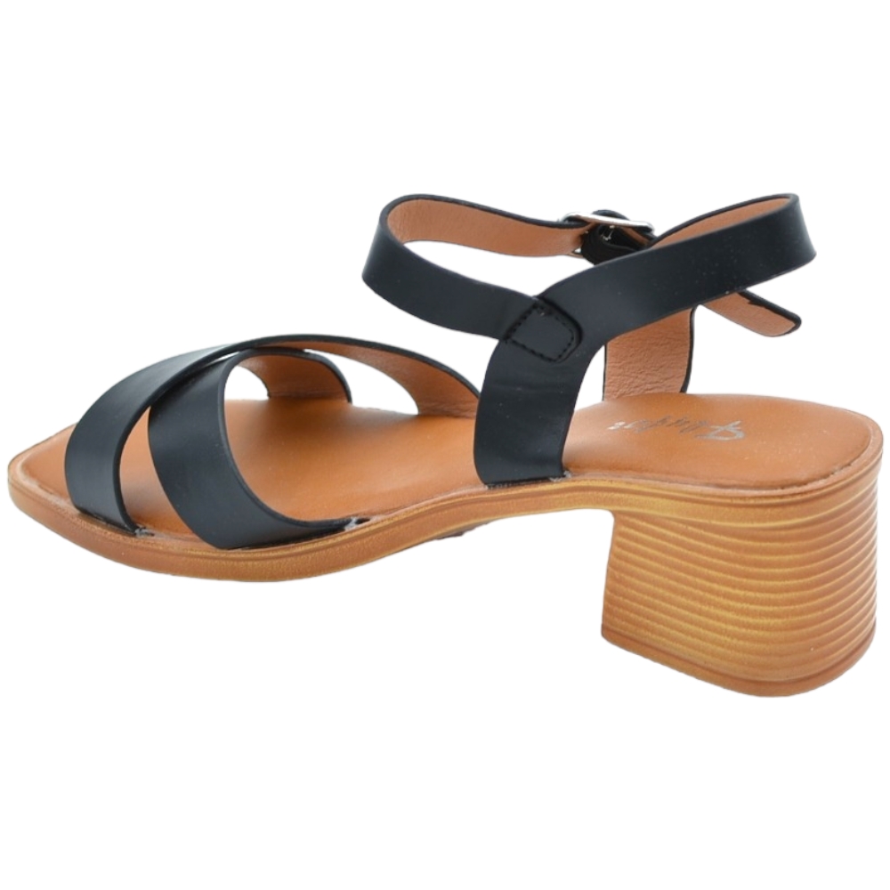 Sandali donna comodo estivo con tacco largo chiusura alla caviglia fibbia e fondo in memory fascia incrociata nero