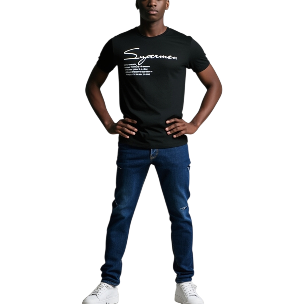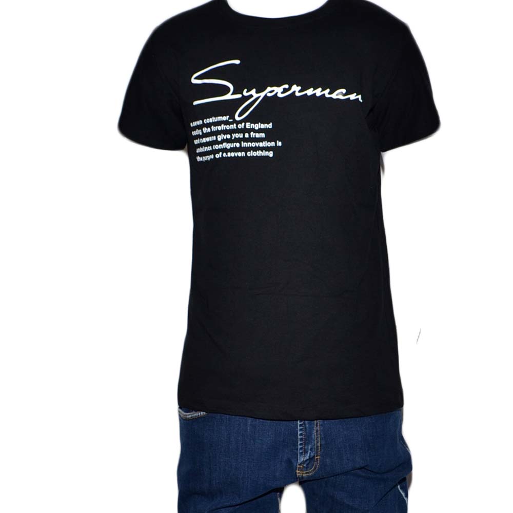 T-Shirt Uomo Girocollo nera Stampa Con Scritta Superman Casual Slim Fit moda uomo