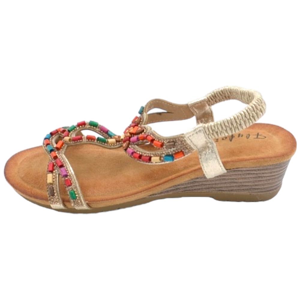 Sandalo gioiello oro pietre colorate tacco zeppa 3cm soletta memory fondo antiscivolo gomma cinturino caviglia
