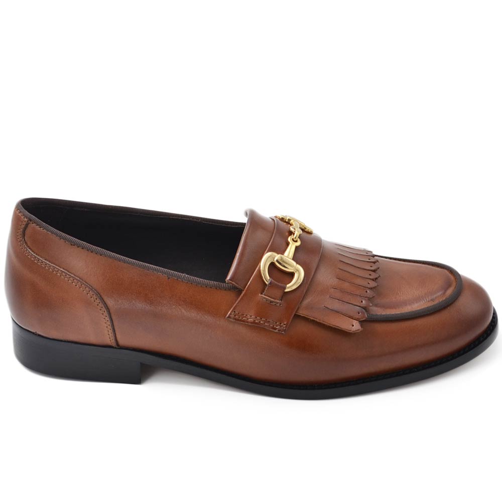Mocassino uomo ls luisantiago con accessorio oro in vera pelle di nappa cuoio spazzolato con frange suola cuoio