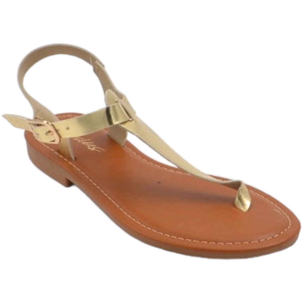 Sandalo basso oro infradito in morbida ecopelle cinturino alla caviglia fondo imbottito in memory comoda estate