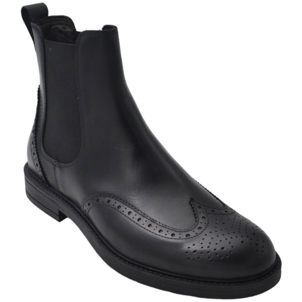 Stivaletto uomo Chelsea Beatles elastico vera pelle nappa nero gomma nera roccia zigrinata casual made in italy handmade.