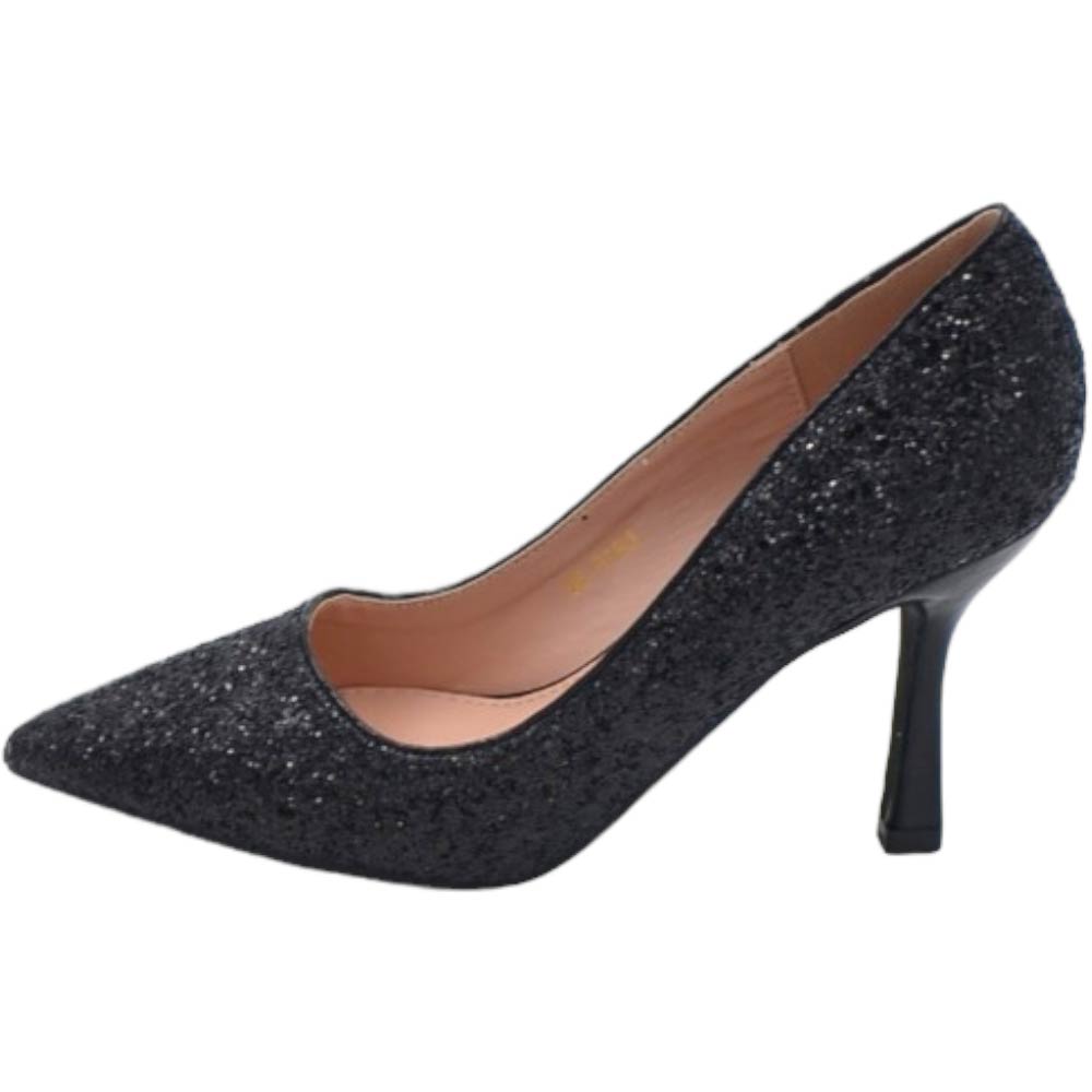 Decollete donna a punta glitterato nero tacco martini 8 cm linea comoda elegante scarpe per cerimonie eventi