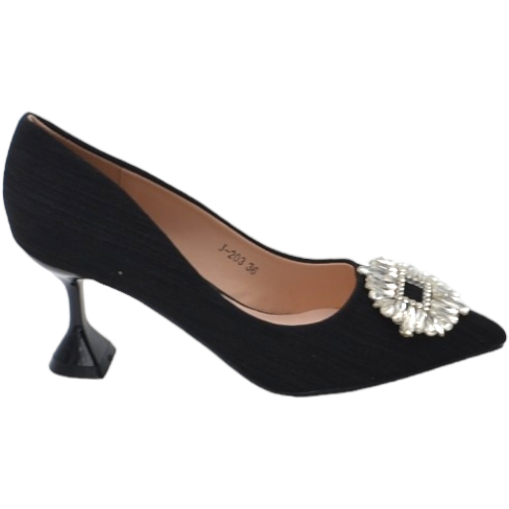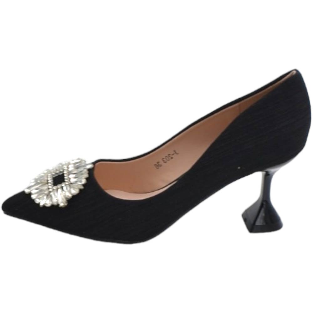 Decollete' donna a punta glitterato nero tacco martini 8 cm linea elegante con spilla gioiello comodo eventi