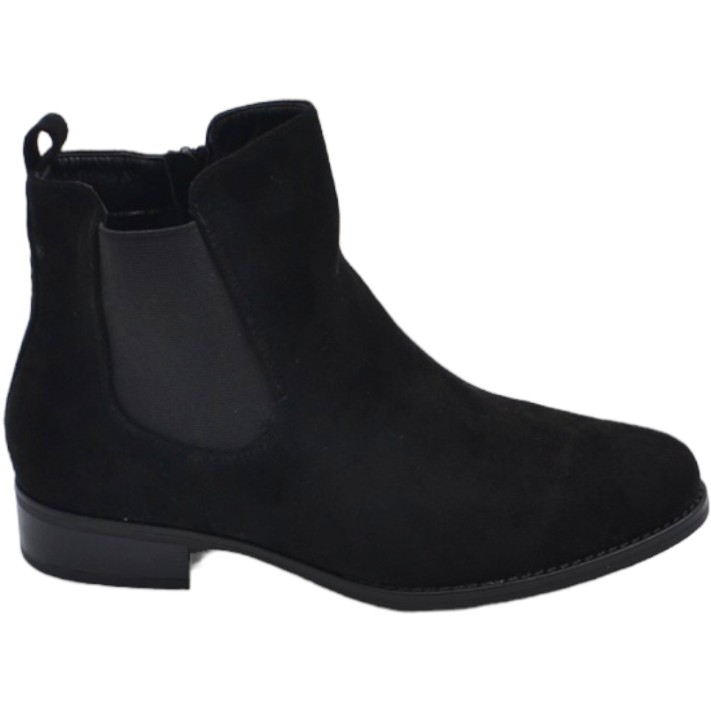 Stivaletti donna chelsea boots in ecopelle scamosciata nero fondo sottile elastico laterale alla caviglia comodo