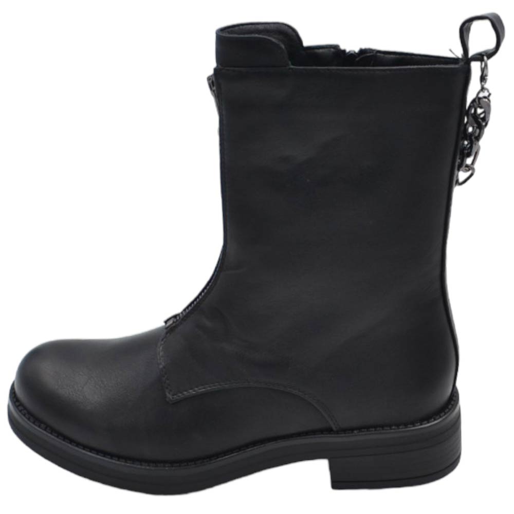 Stivaletto donna nero mezzo gambale Chelsea boots con zip frontale argento e catena fondo gomma anatomico antiscivolo