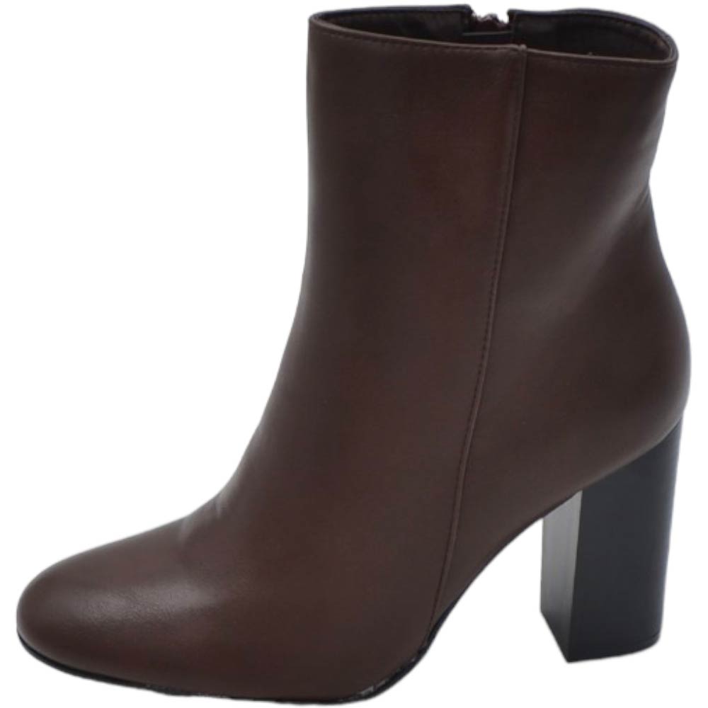 Scarpe tronchetto stivaletto donna tacco alto largo rondo alla caviglia a punta marrone zip laterale aderente