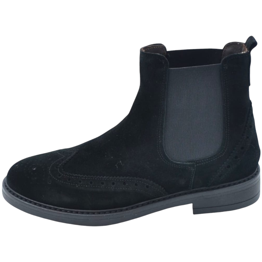 Beatles uomo stivale a collo basso elastico laterale ricamo punta vera pelle camoscio nero fondo gomma made in italy