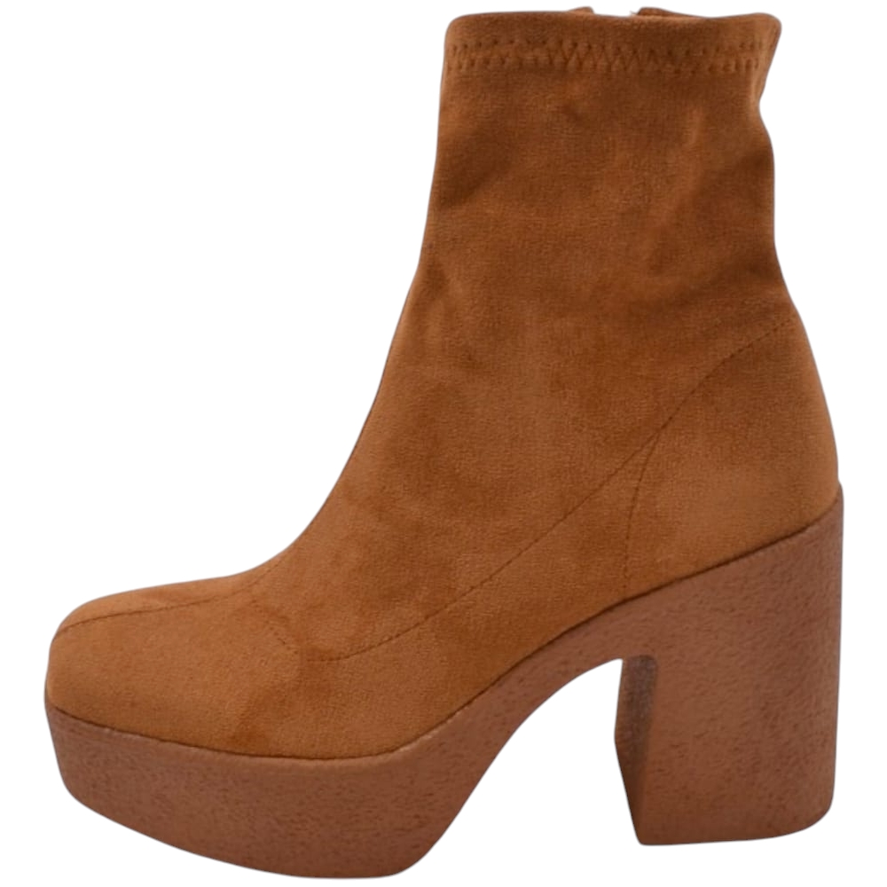 Tronchetto donna stivaletto camoscio cuoio punta quadrata tacco 8cm plateau zeppa 3cm zip alla caviglia effetto calzino
