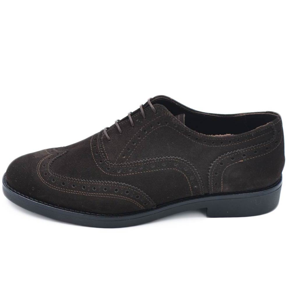 Scarpe uomo stringate decorate marrone in vera pelle morbida scamosciata fondo gomma light alto handmade italy