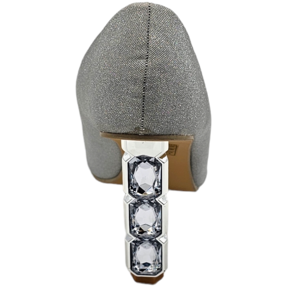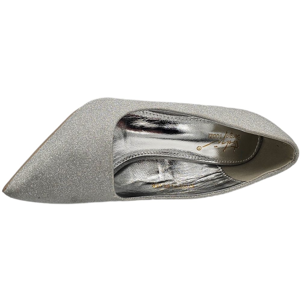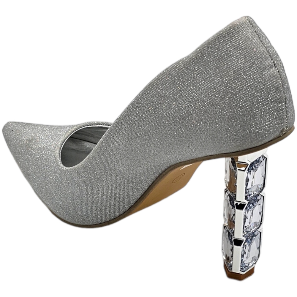 Decollete a punta donna scarpa elegante glitter argento con tacco gioiello triangolare 10 cm
