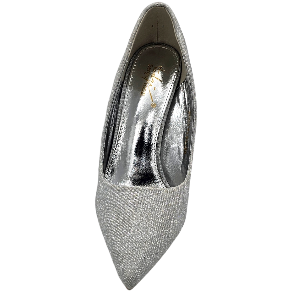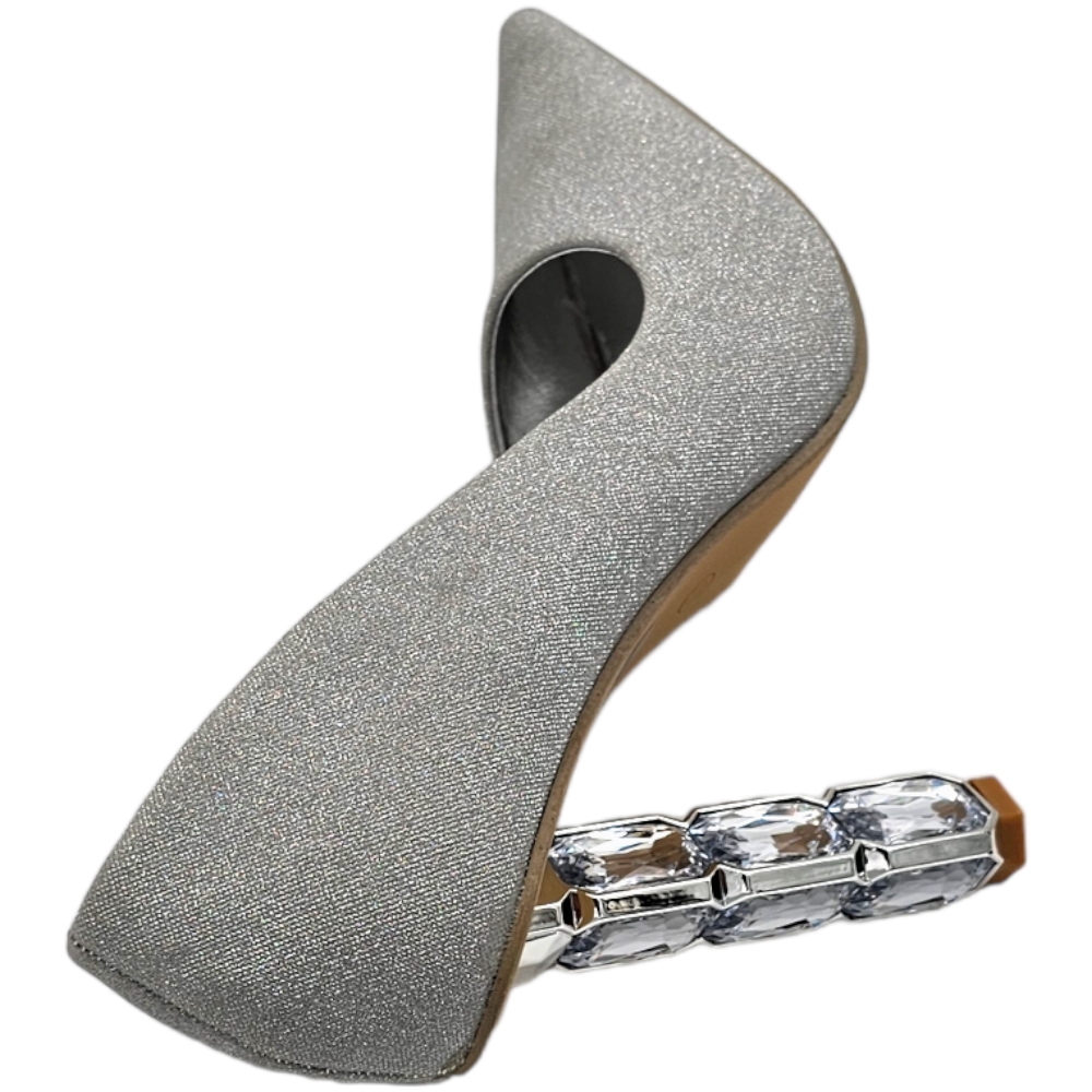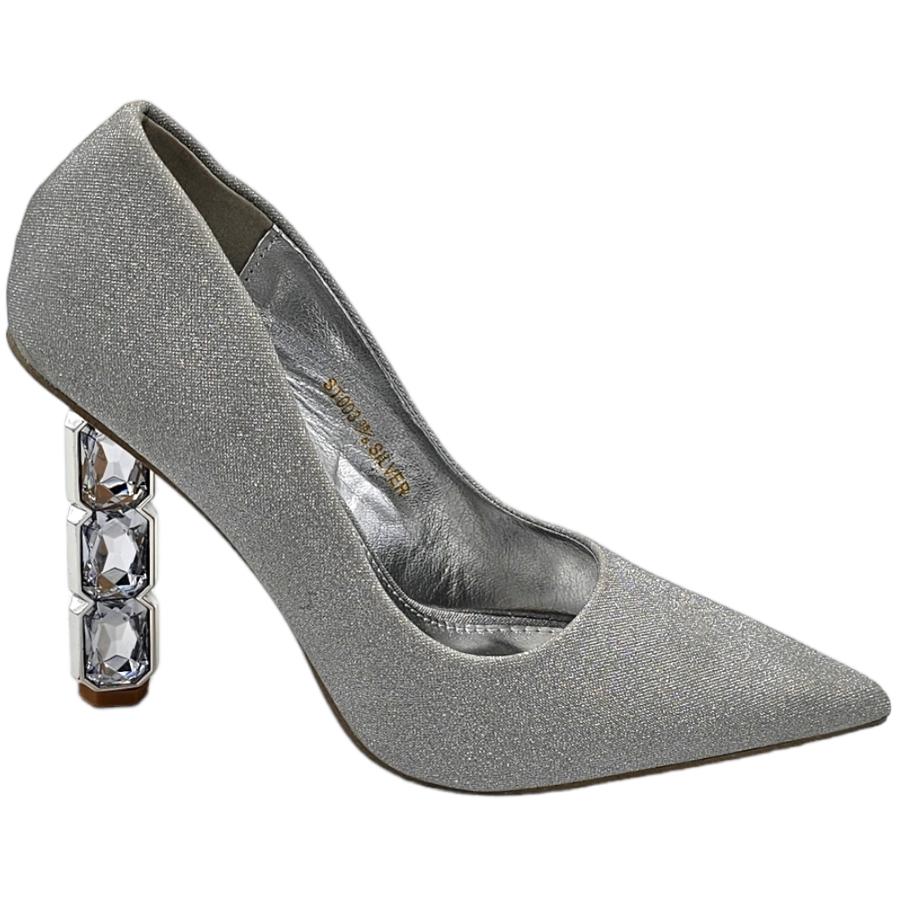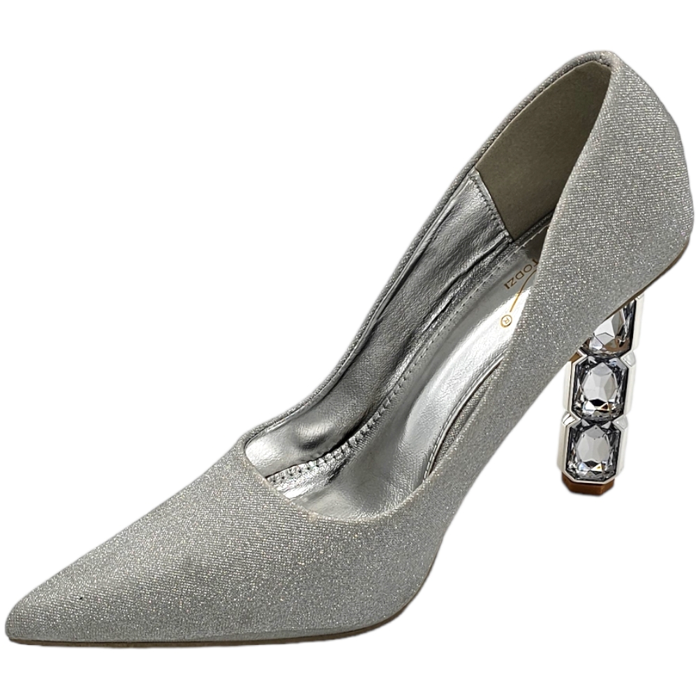 Decollete a punta donna scarpa elegante glitter argento con tacco gioiello triangolare 10 cm