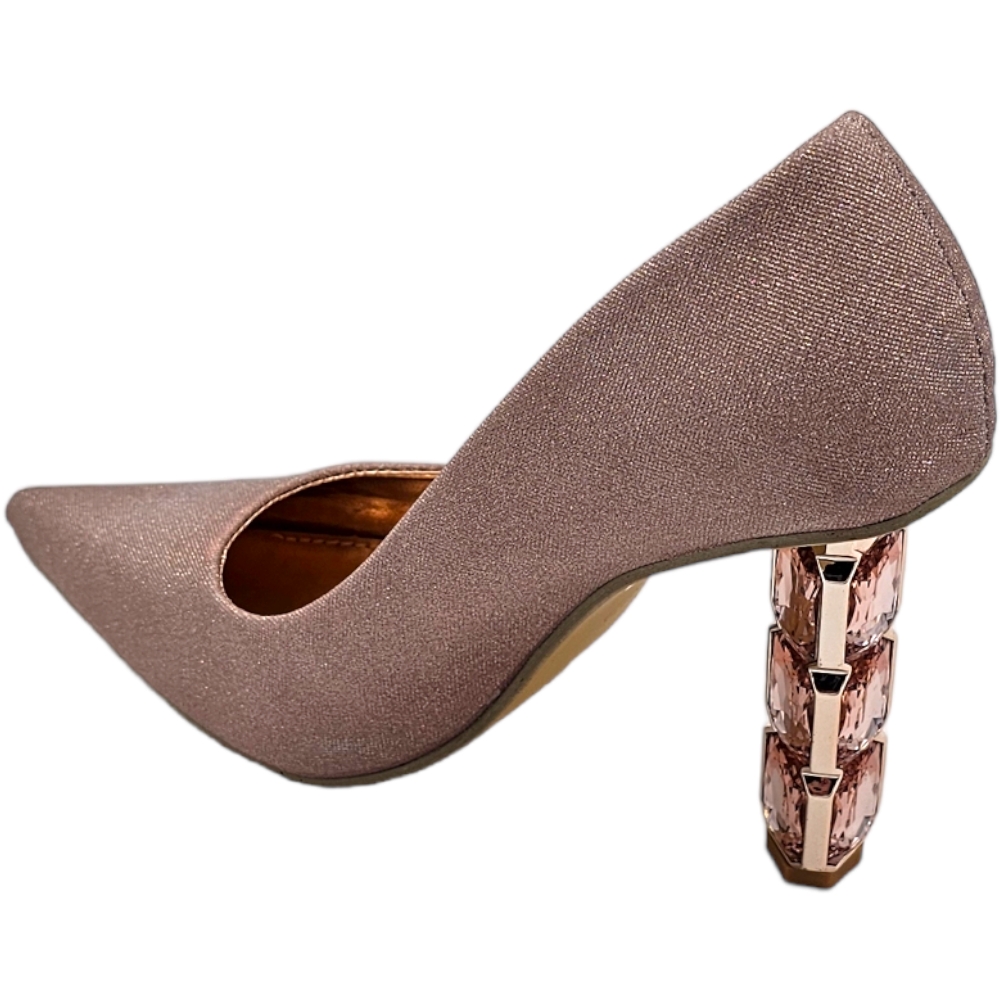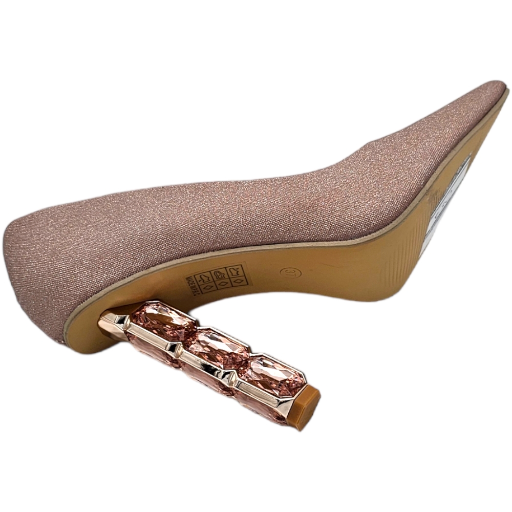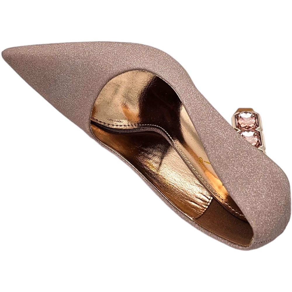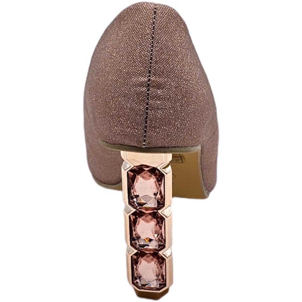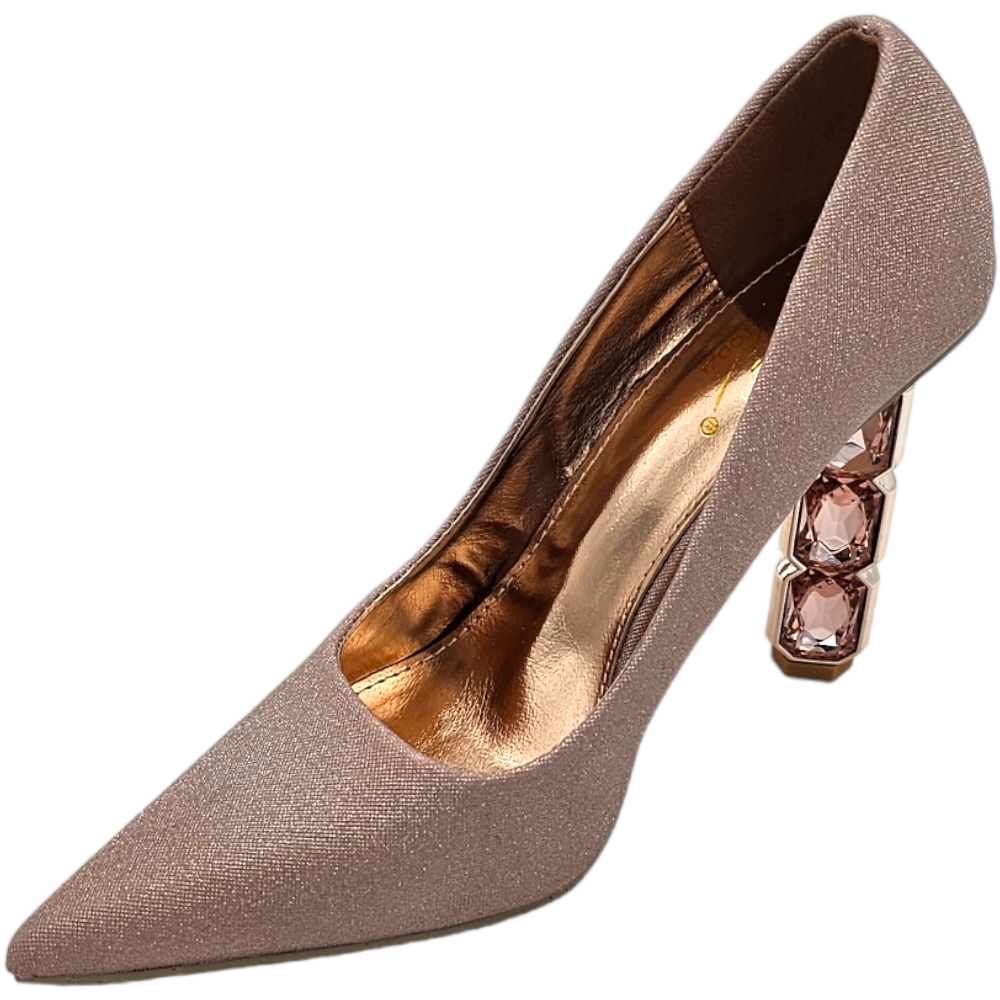 Decollete a punta donna scarpa elegante glitter champagne oro rosa con tacco gioiello triangolare 10 cm