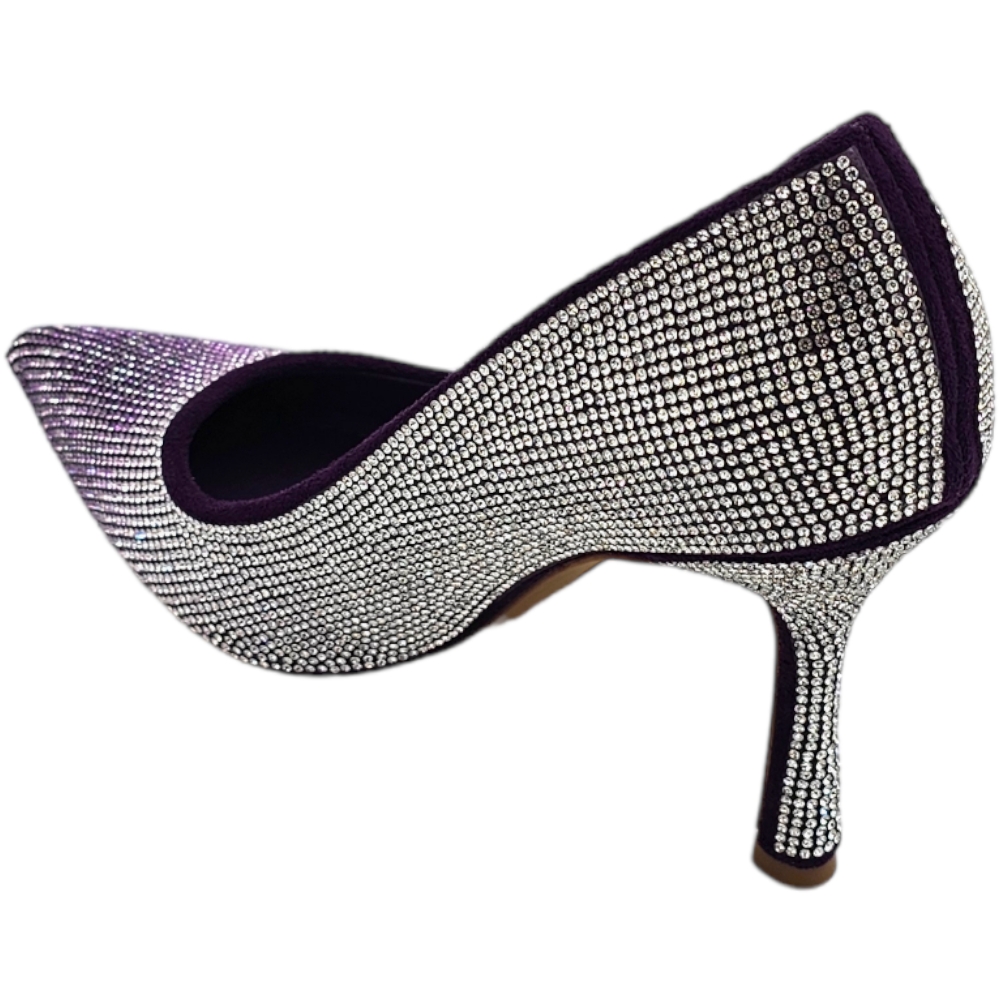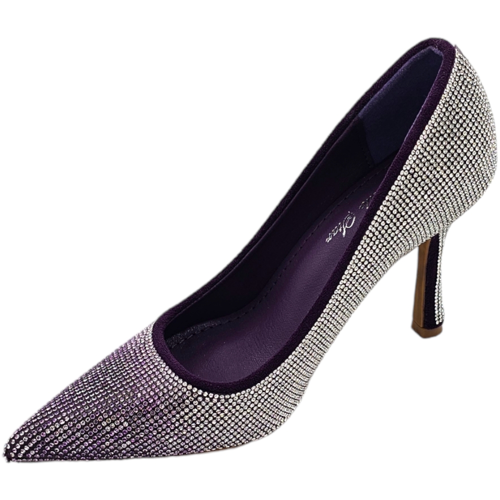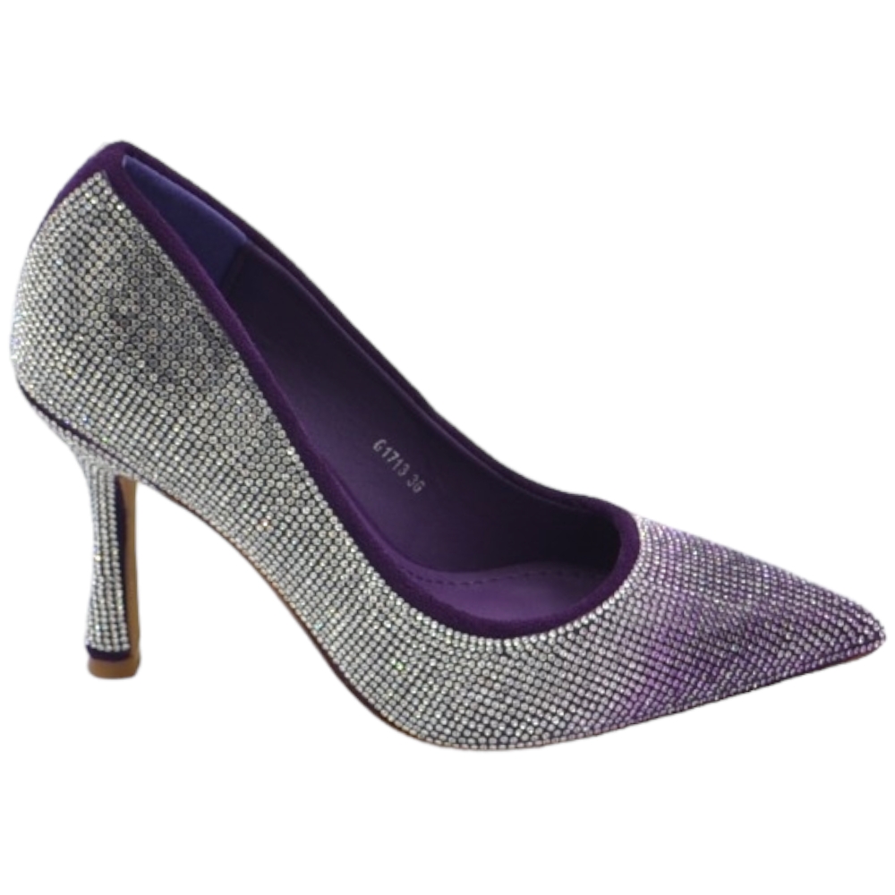 Scarpe decollete donna eleganti viola con brillantini degrade argento tacco martini 10 cm