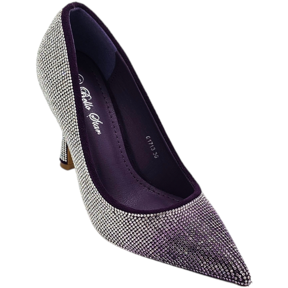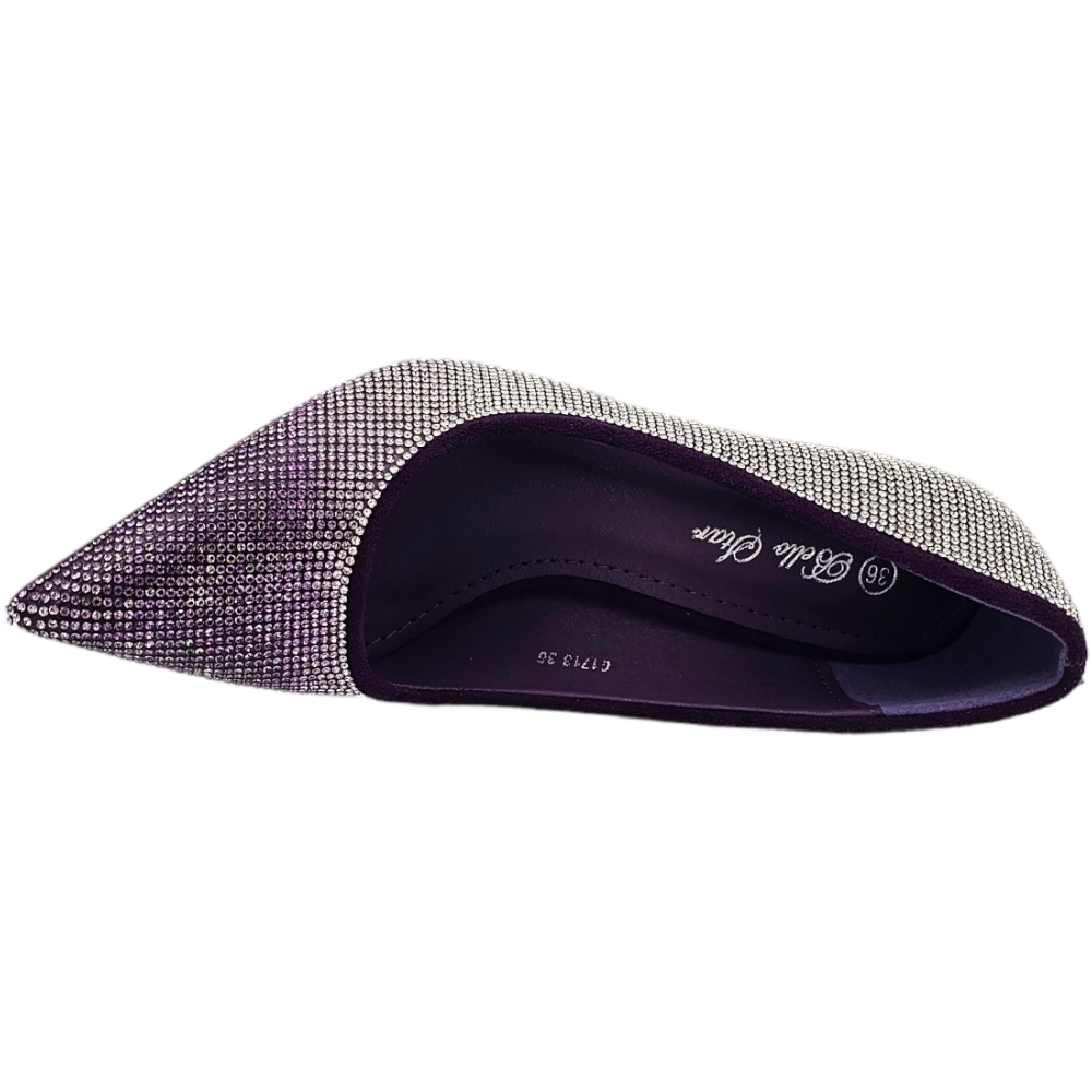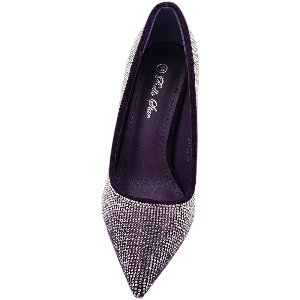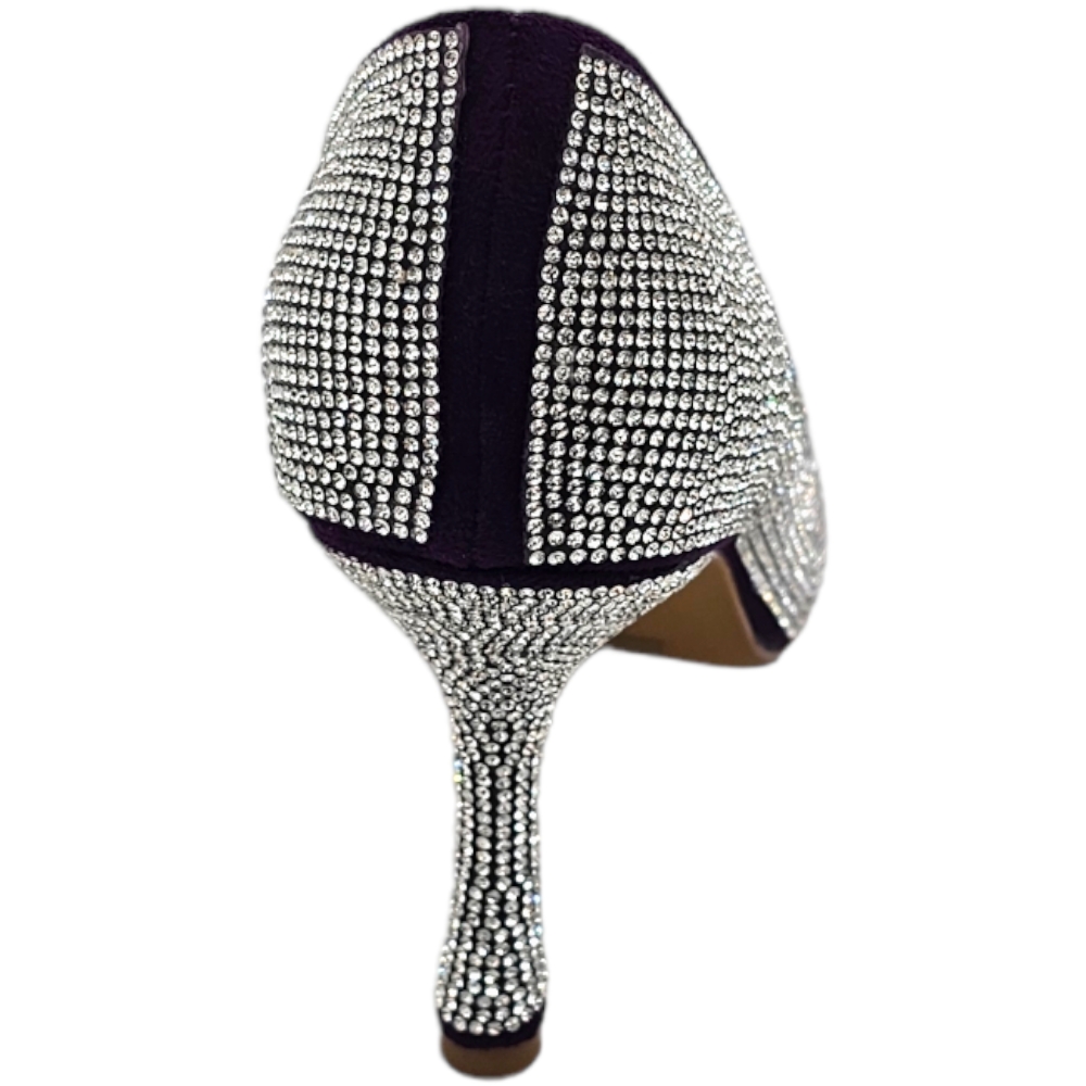 Scarpe decollete donna eleganti viola con brillantini degrade argento tacco martini 10 cm