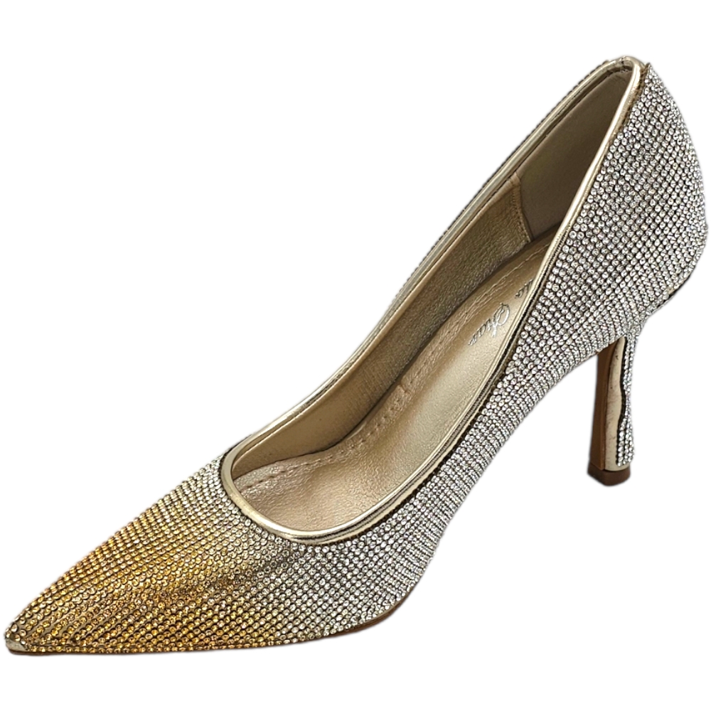Scarpe decollete donna eleganti oro dorato con brillantini degrade argento tacco martini 10 cm