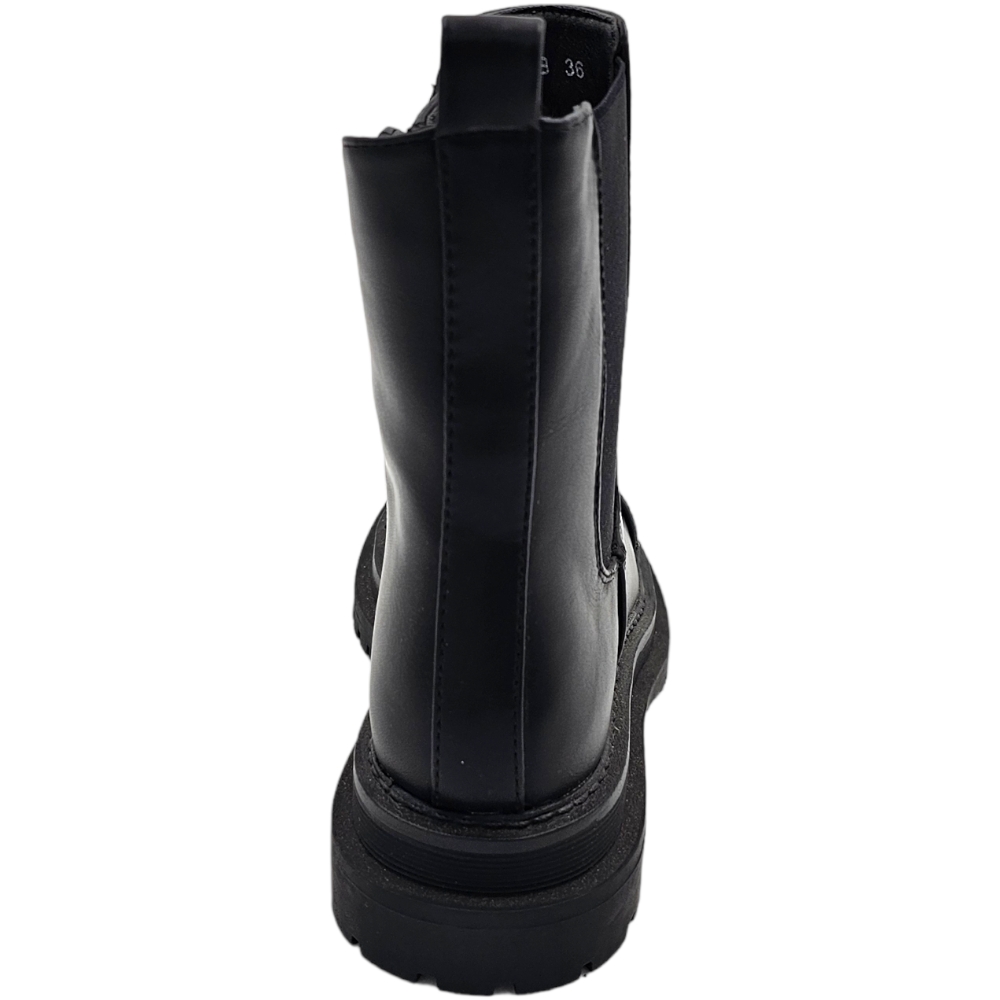 Stivaletti donna platform chelsea boots combat nero in ecopelle fondo alto zip elastico laterale e bendina tendenza.