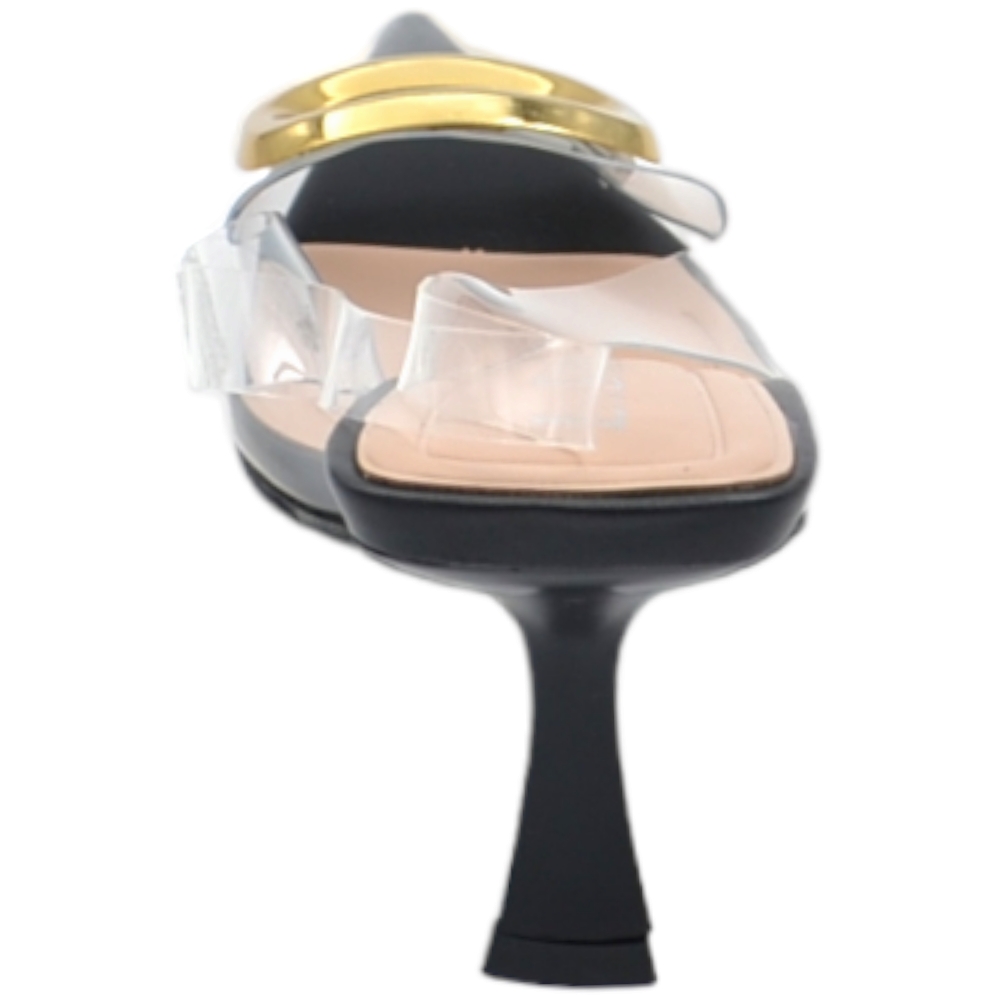 Decollete scarpa donna a punta trasparente con nodo oro gioiello tacco martini nero 7 elegante evento glam