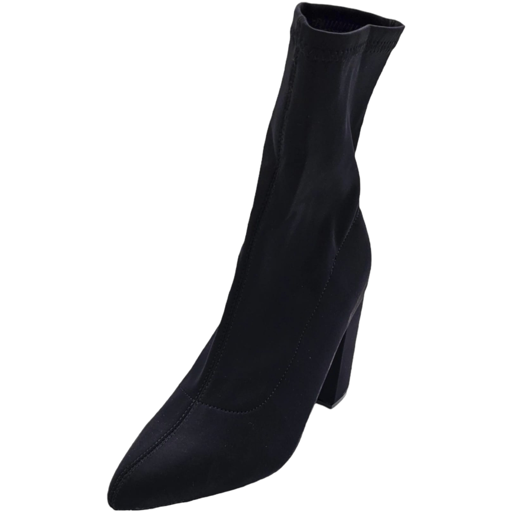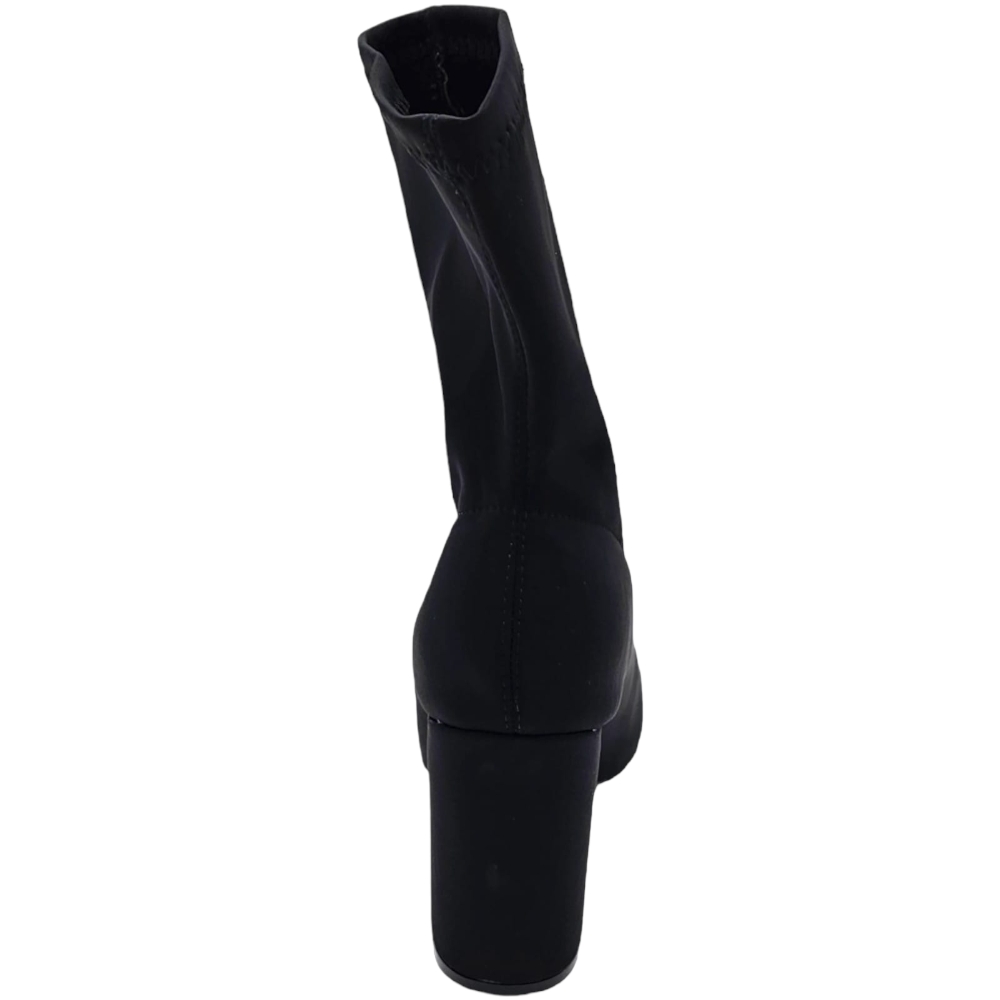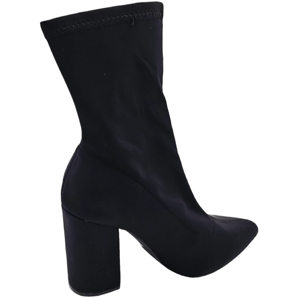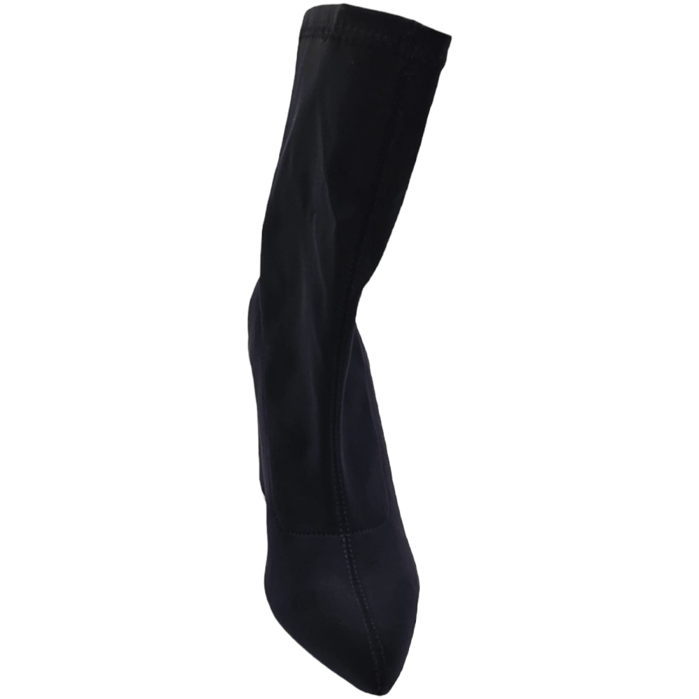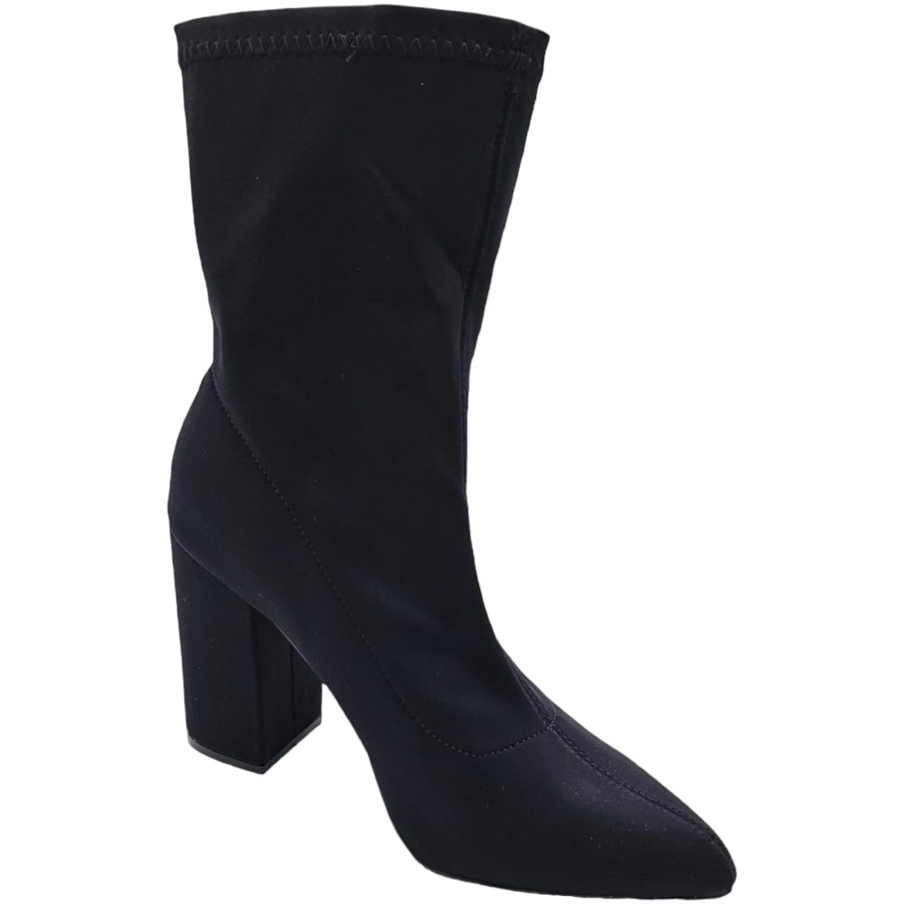 Stivaletti tronchetti donna a punta in licra effetto calzino nero con tacco largo 6 cm zip aderenti al polpaccio sexy