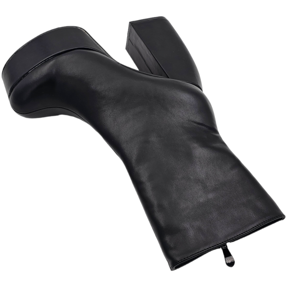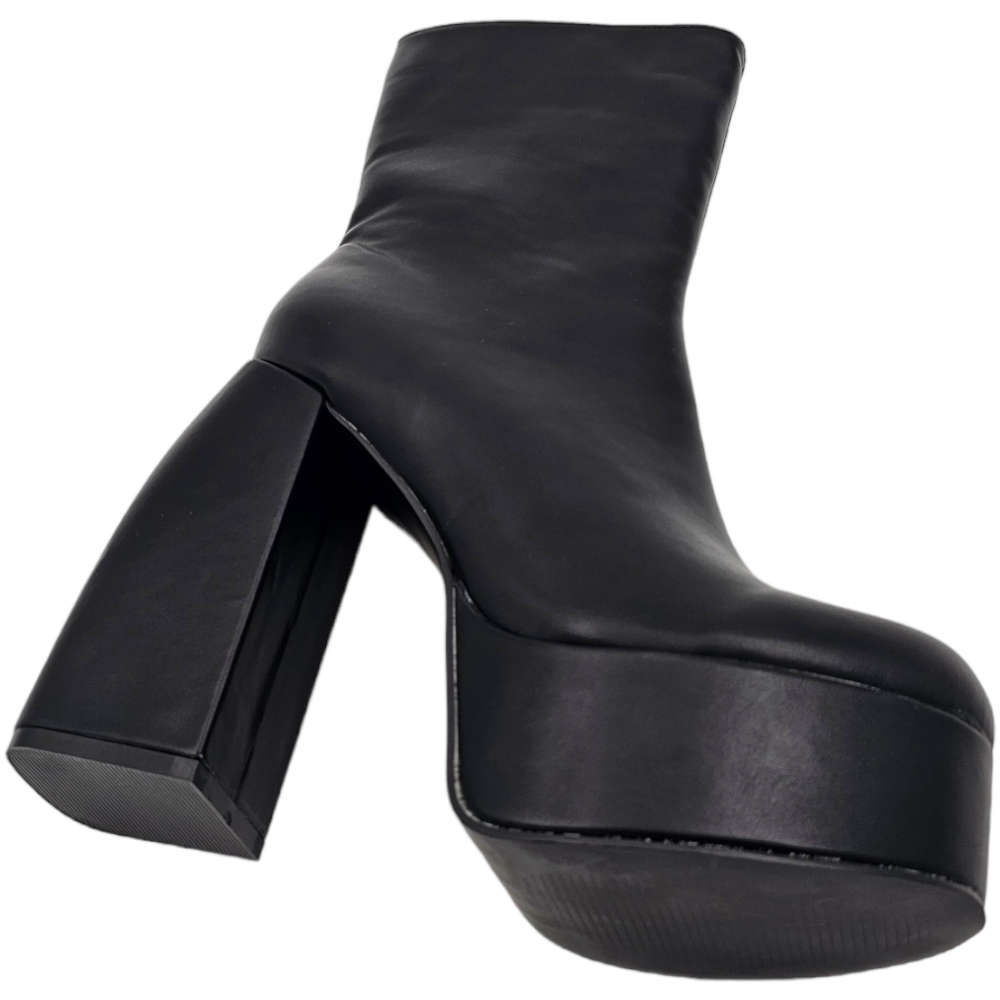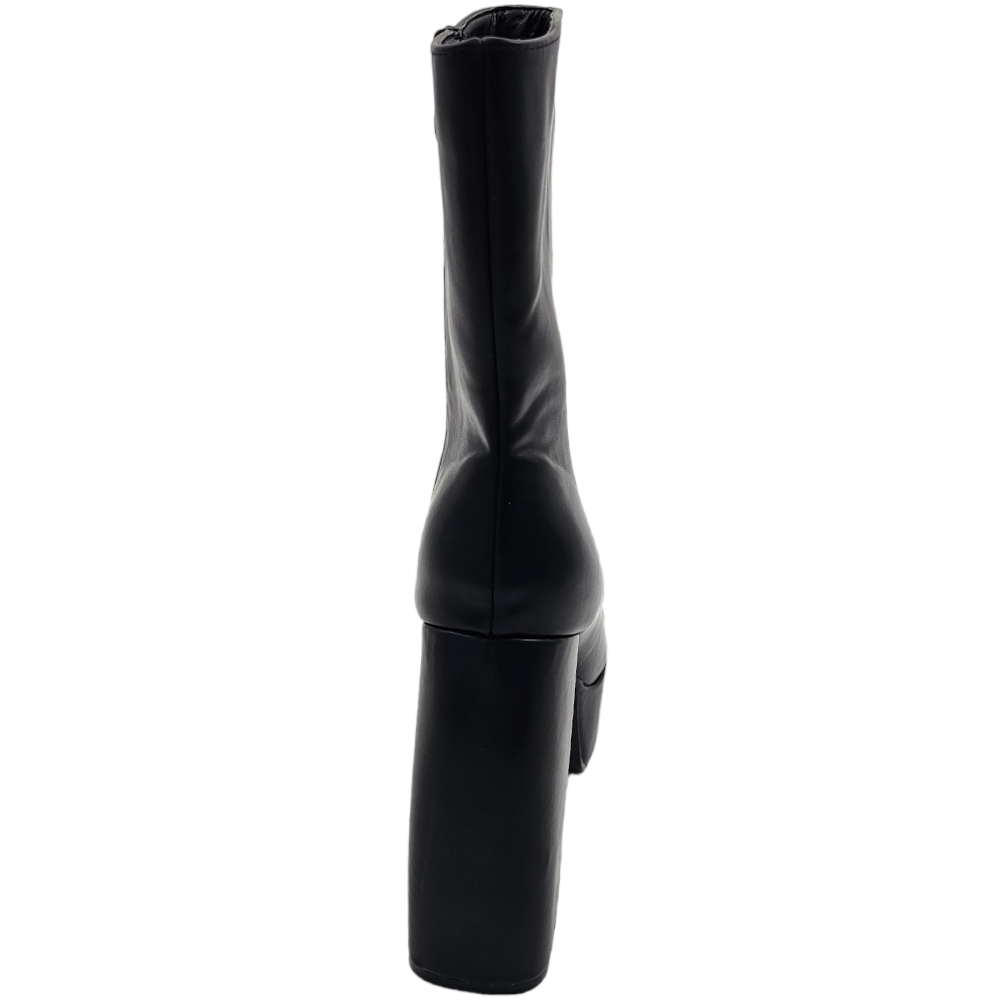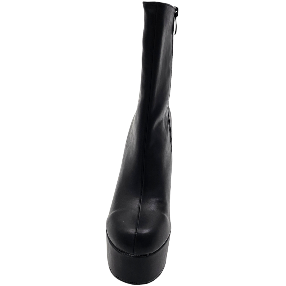 Tronchetto donna stivaletto in pelle nera punta tonda tacco 12cm plateau 5cm con zip effetto calzino poledance