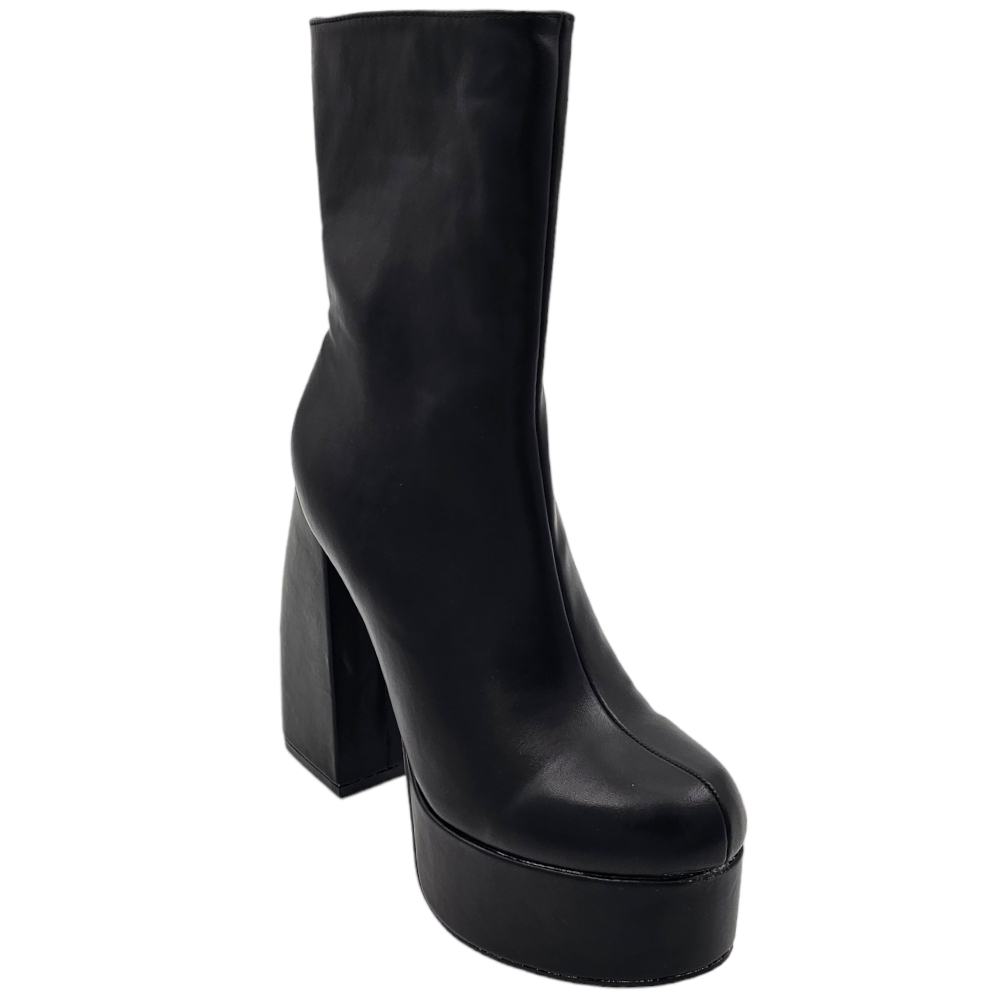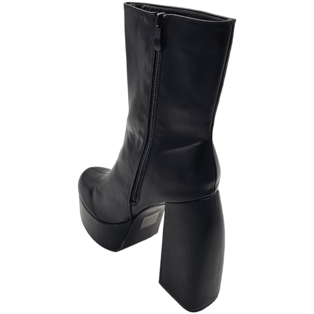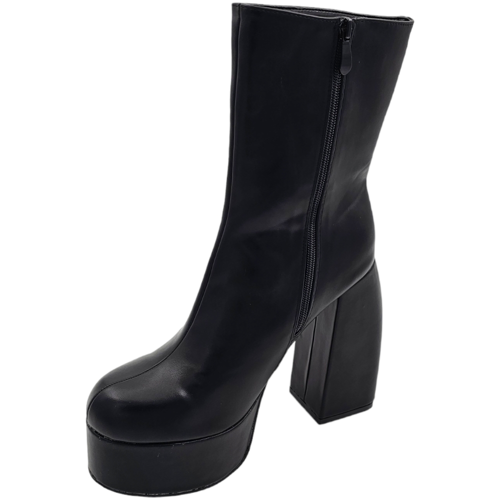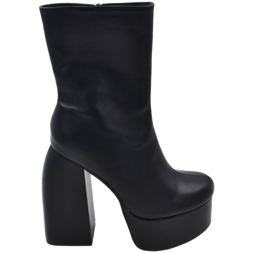 Tronchetto donna stivaletto in pelle nera punta tonda tacco 12cm plateau 5cm con zip effetto calzino poledance