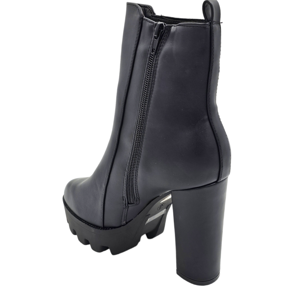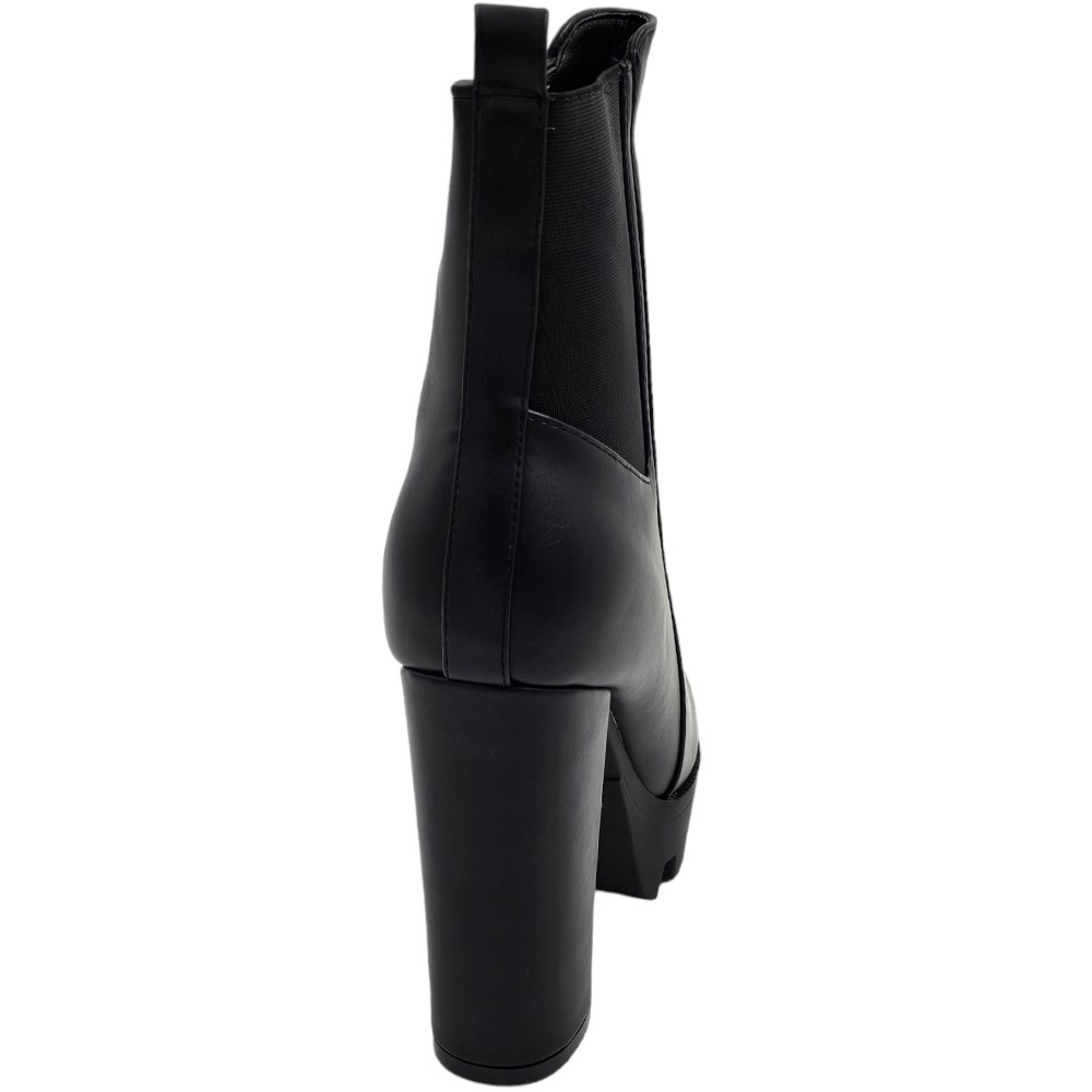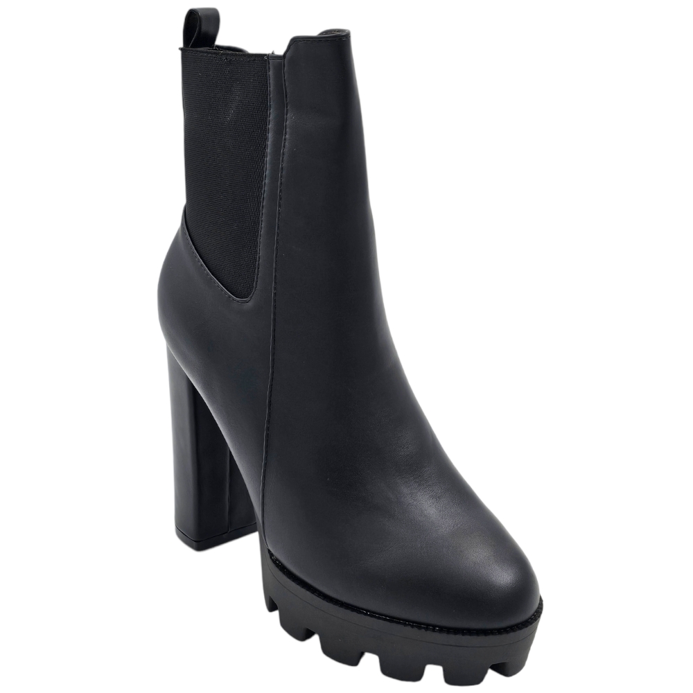 Stivaletto Tronchetto alto donna pelle nero con tacco largo 15 e plateau 4 cm linea Basic elastico Chelsea moda platform