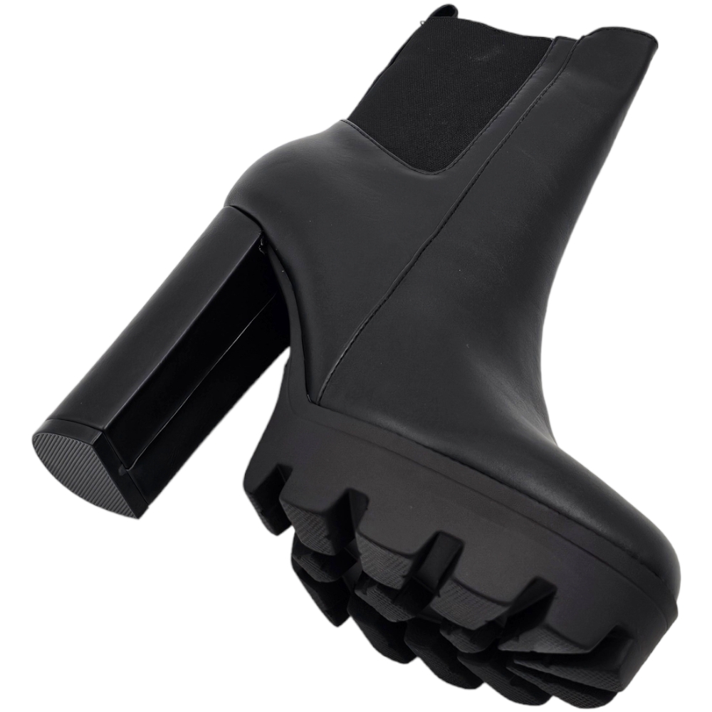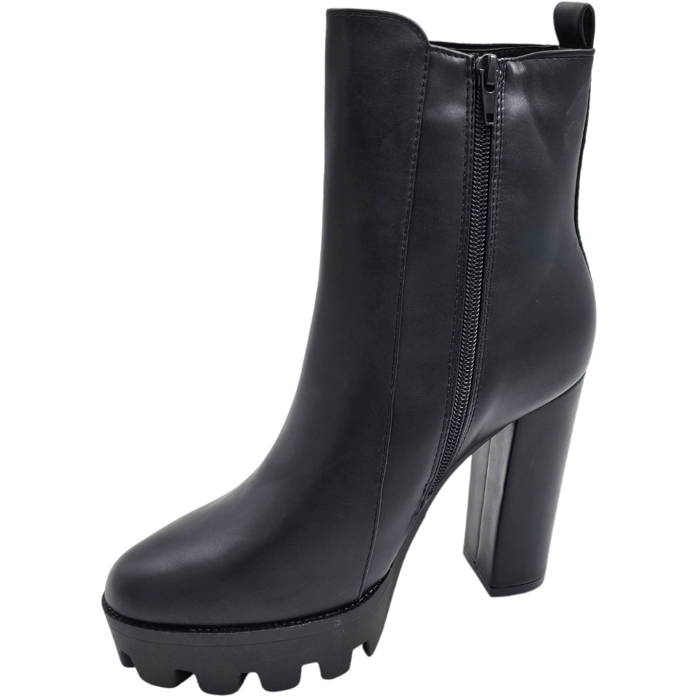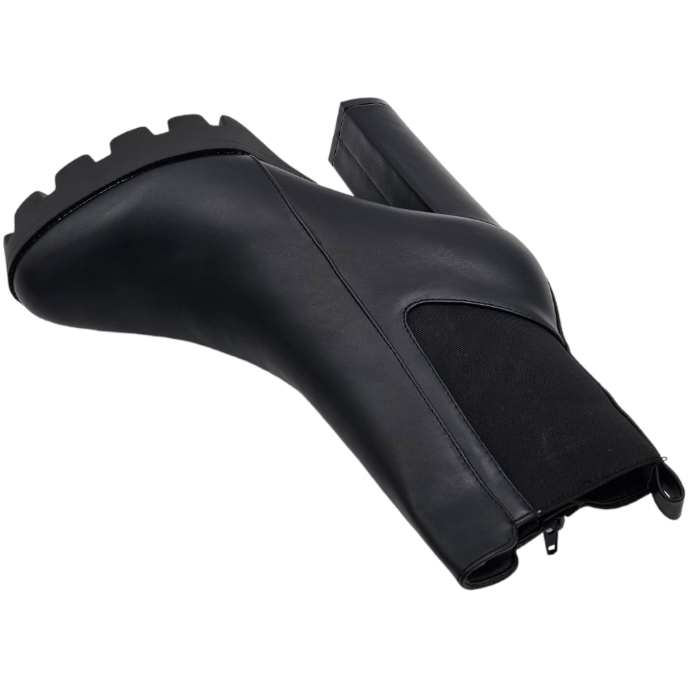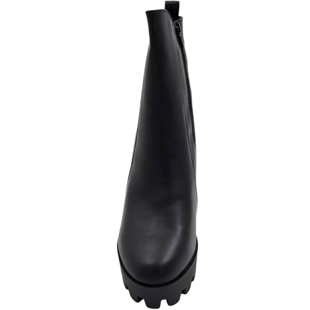 Stivaletto Tronchetto alto donna pelle nero con tacco largo 15 e plateau 4 cm linea Basic elastico Chelsea moda platform