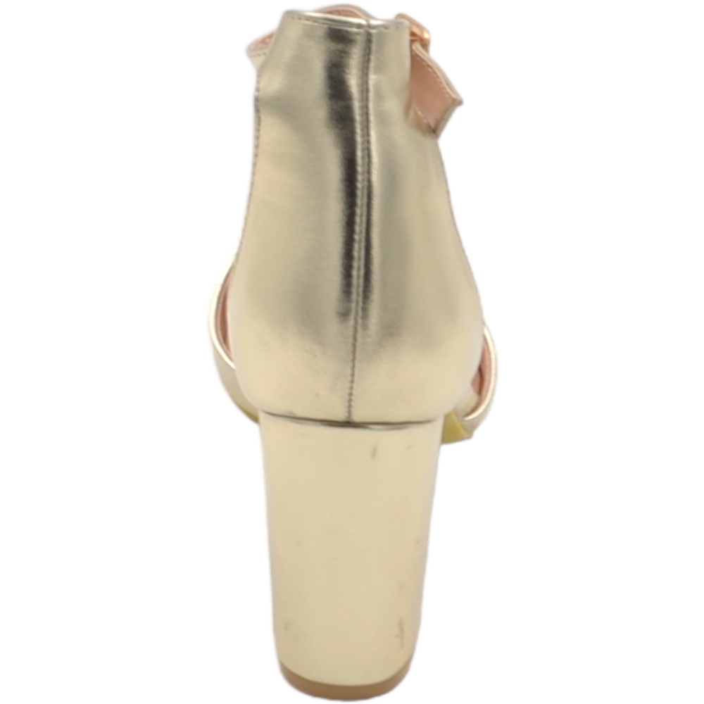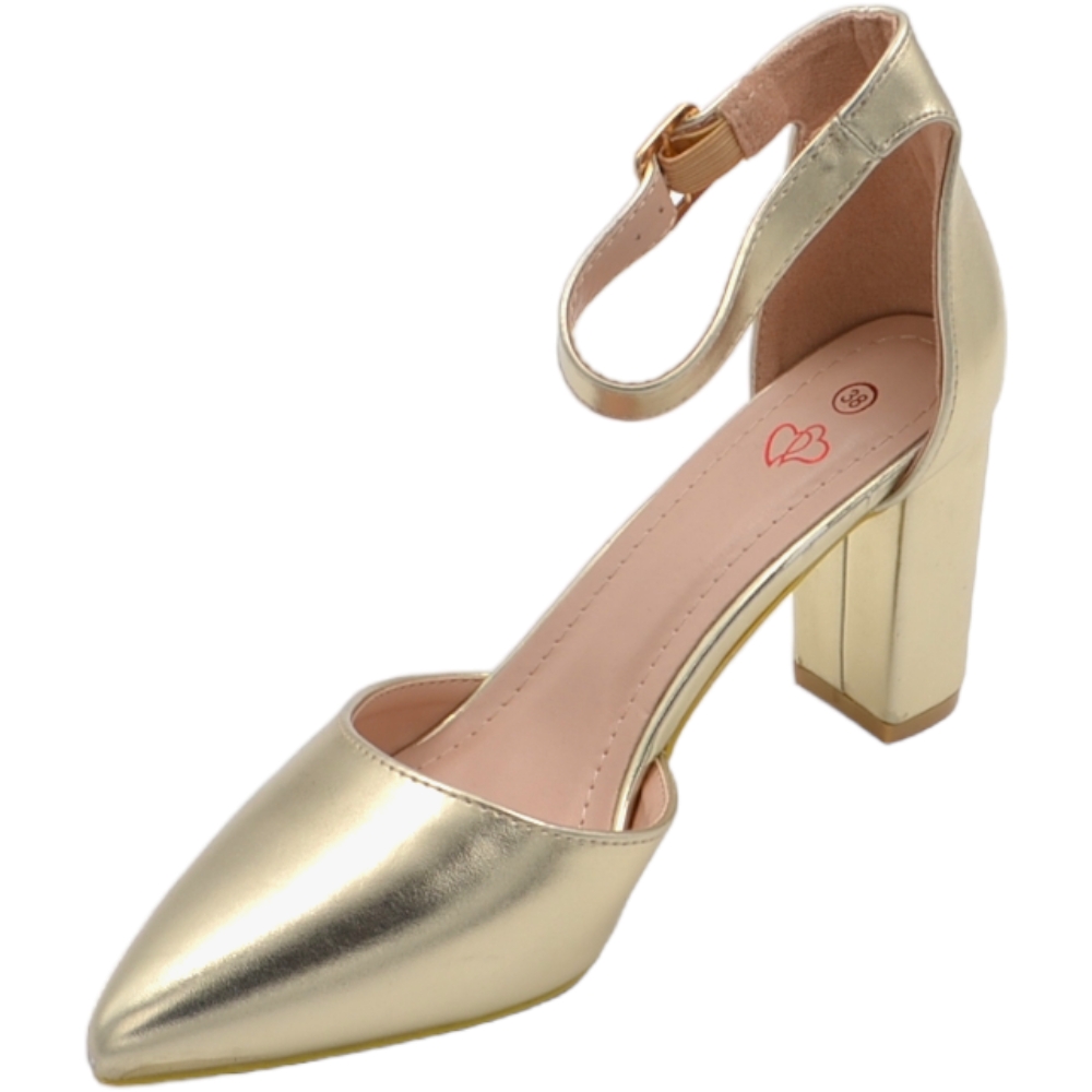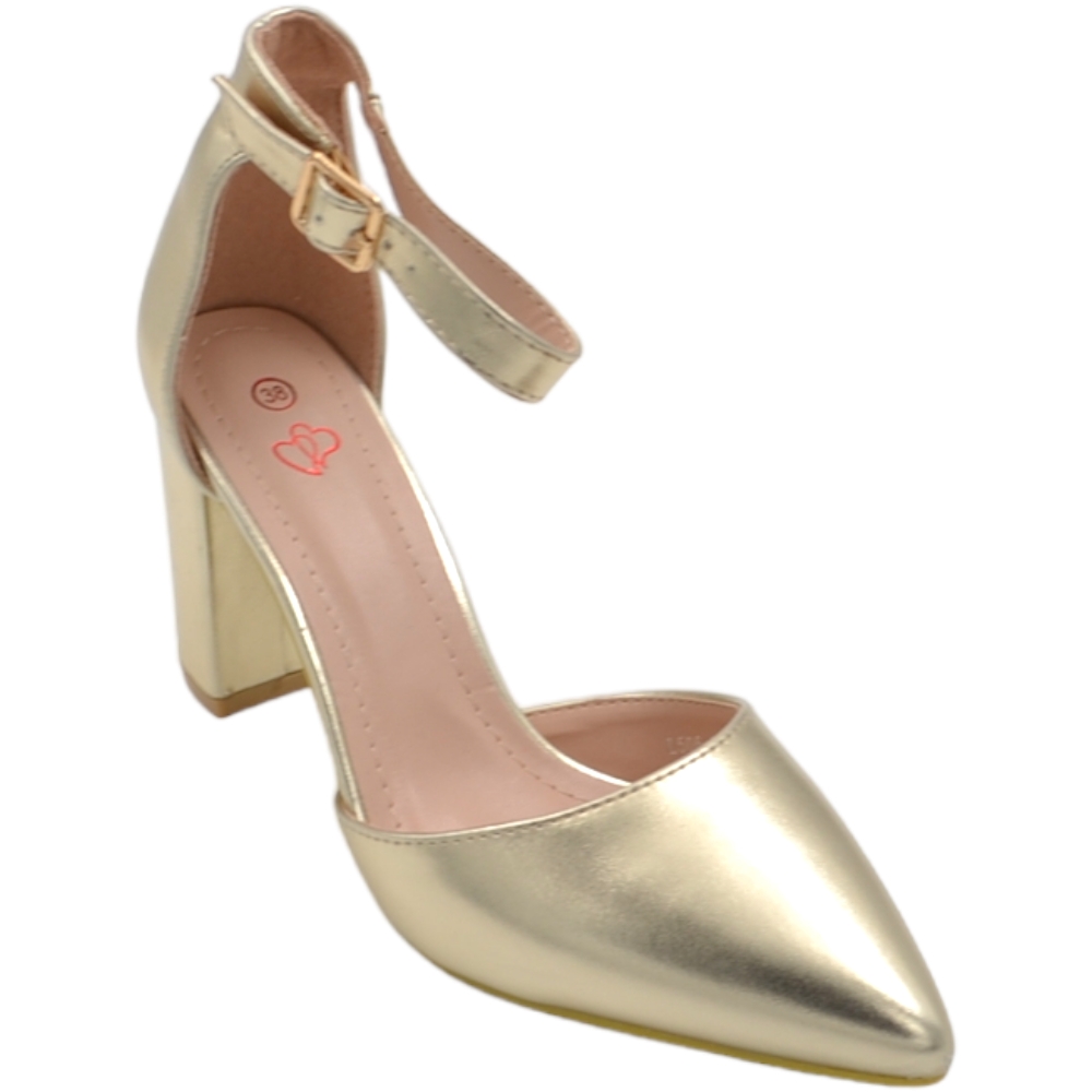 Scarpa decollete' donna a punta maryjane oro con tacco largo 8cm e cinturino alla caviglia stabile comodo