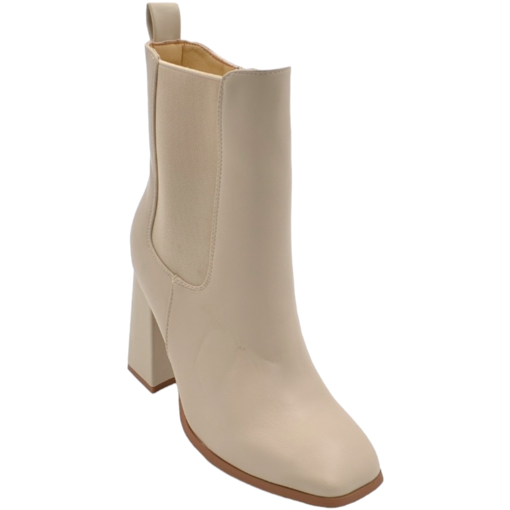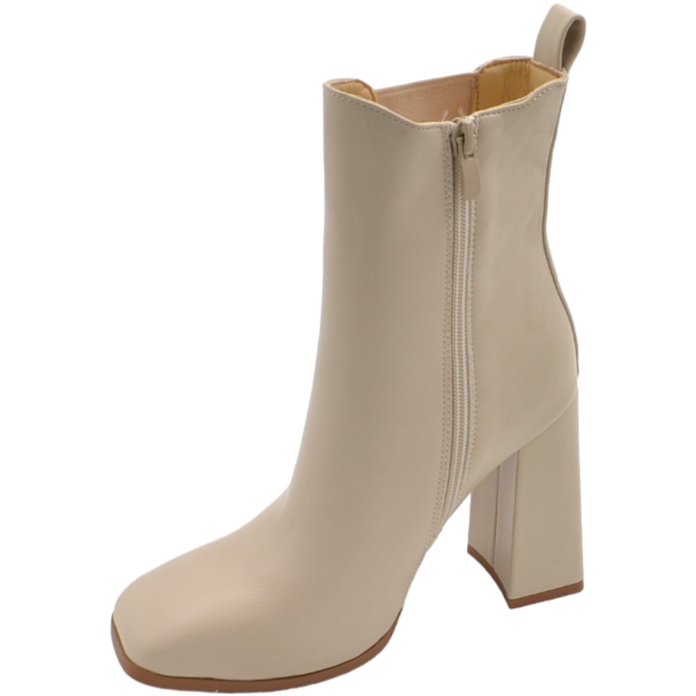 Stivaletto Tronchetto donna linea Basic beige con elastico Beatles punta quadrata tacco doppio 8 cm zip laterale
