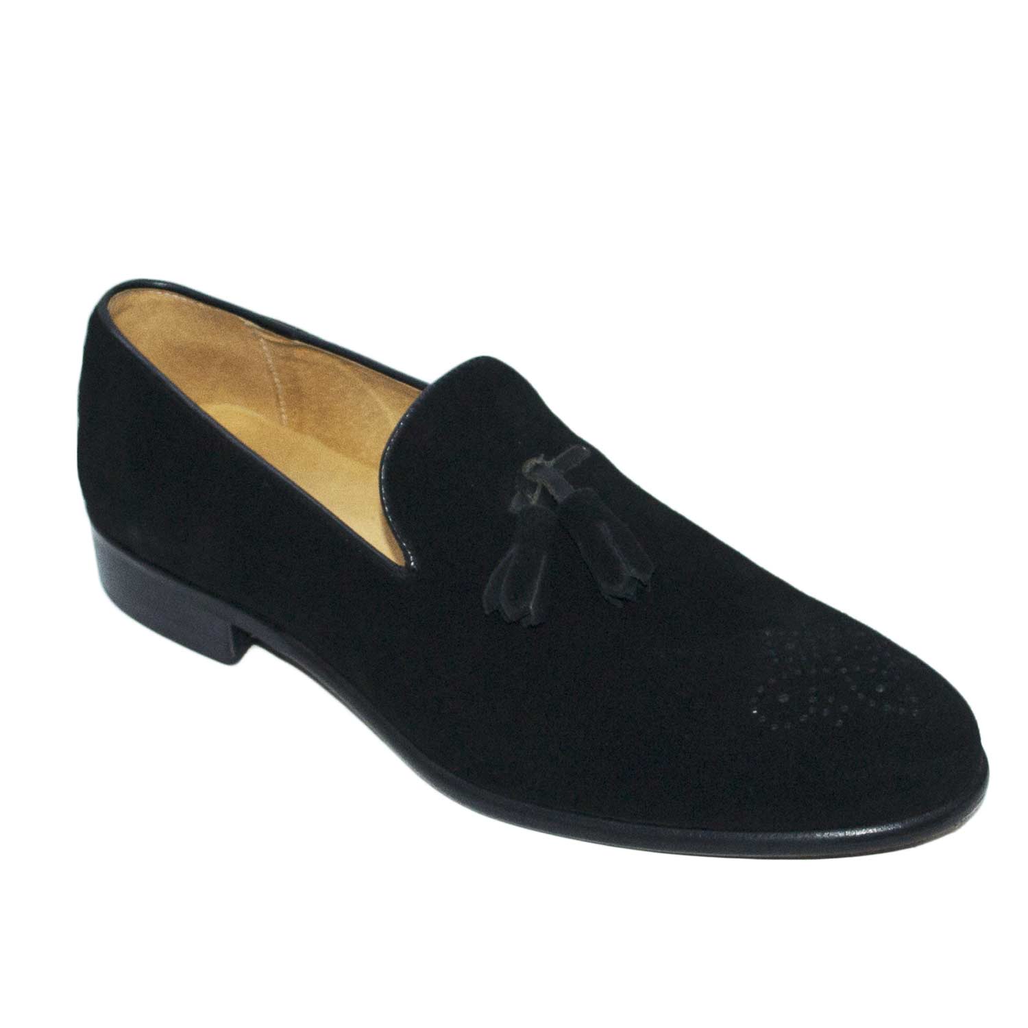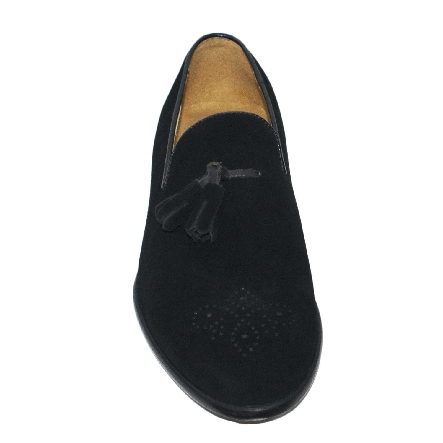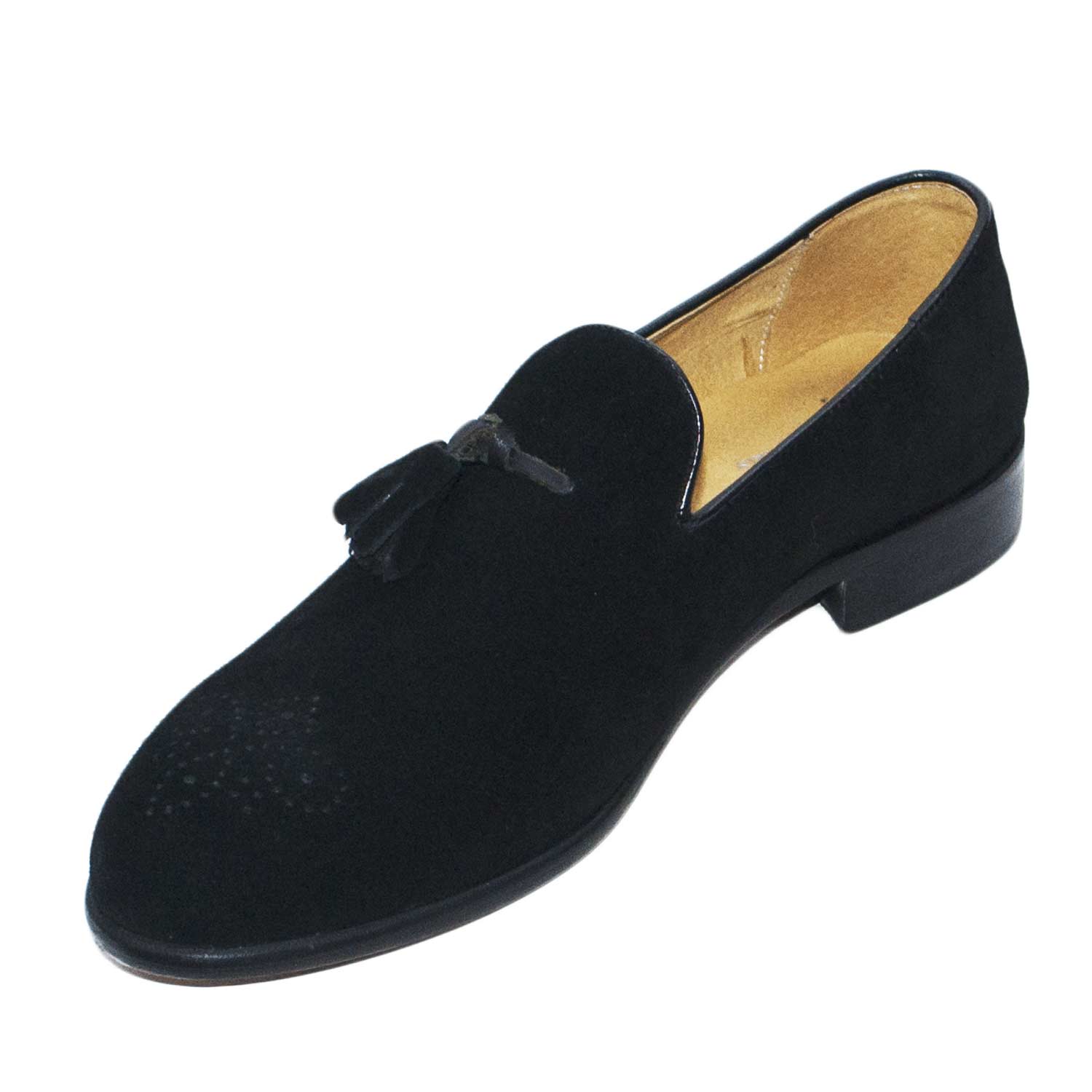 Scarpe uomo mocassino in camoscio nero fondo nero comfort genuine leather