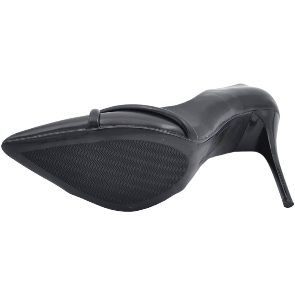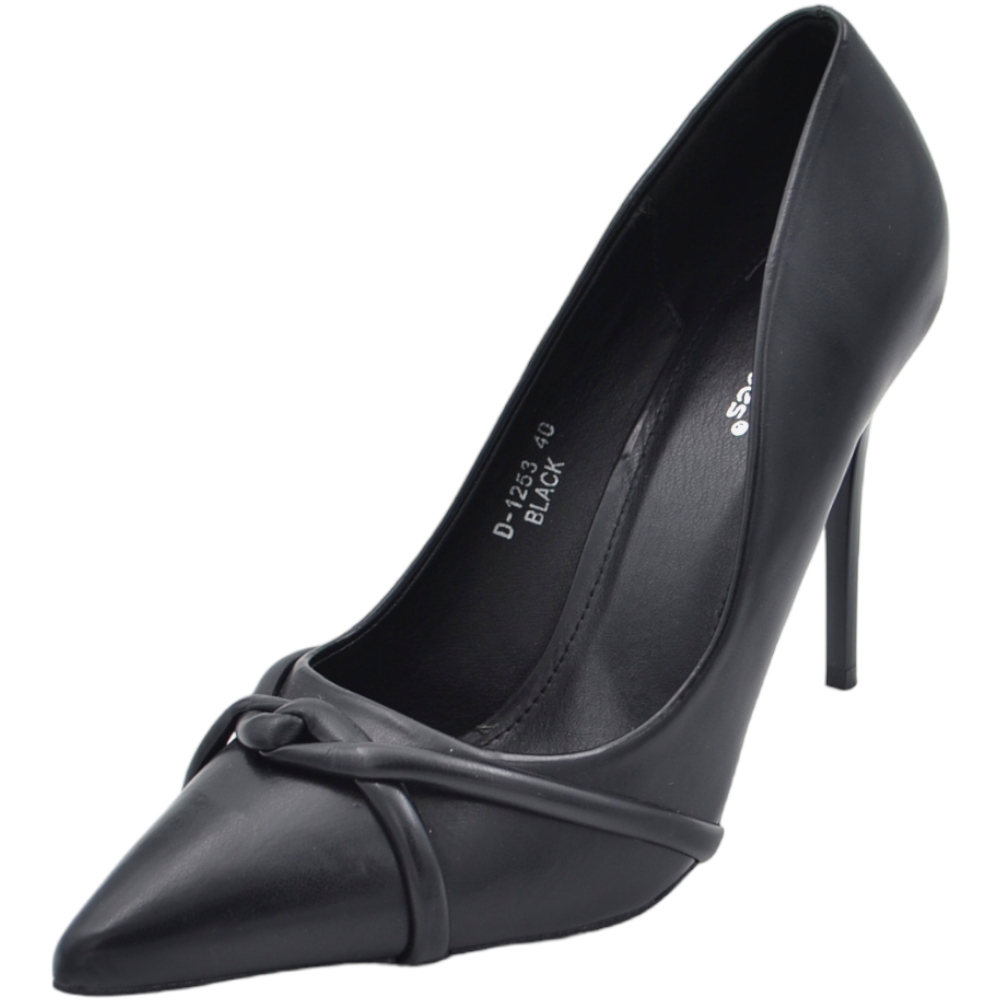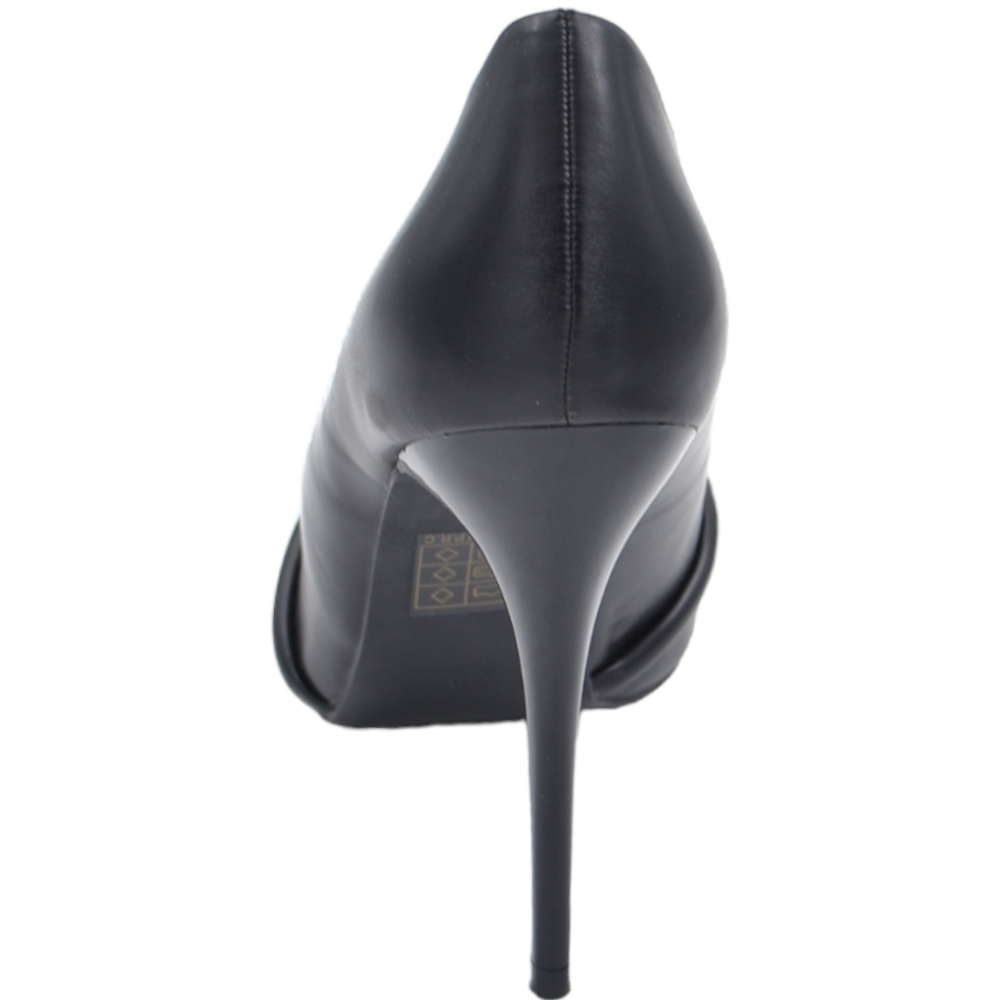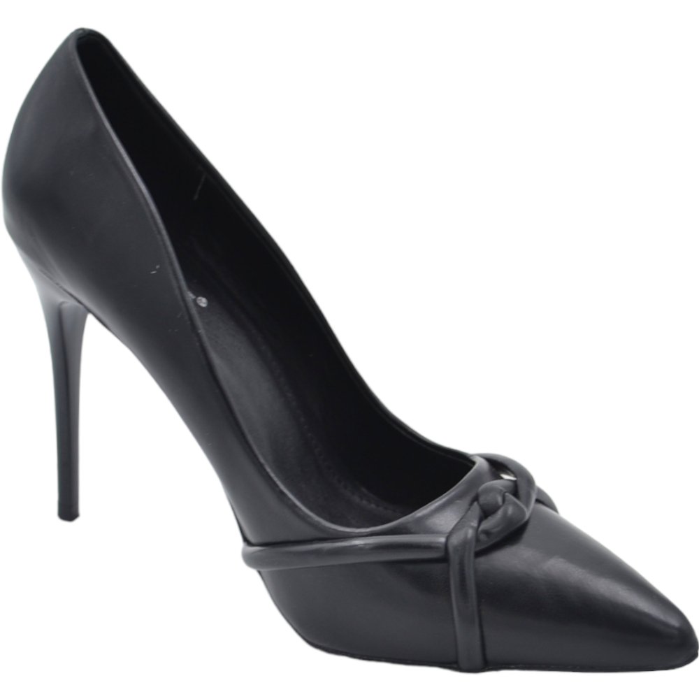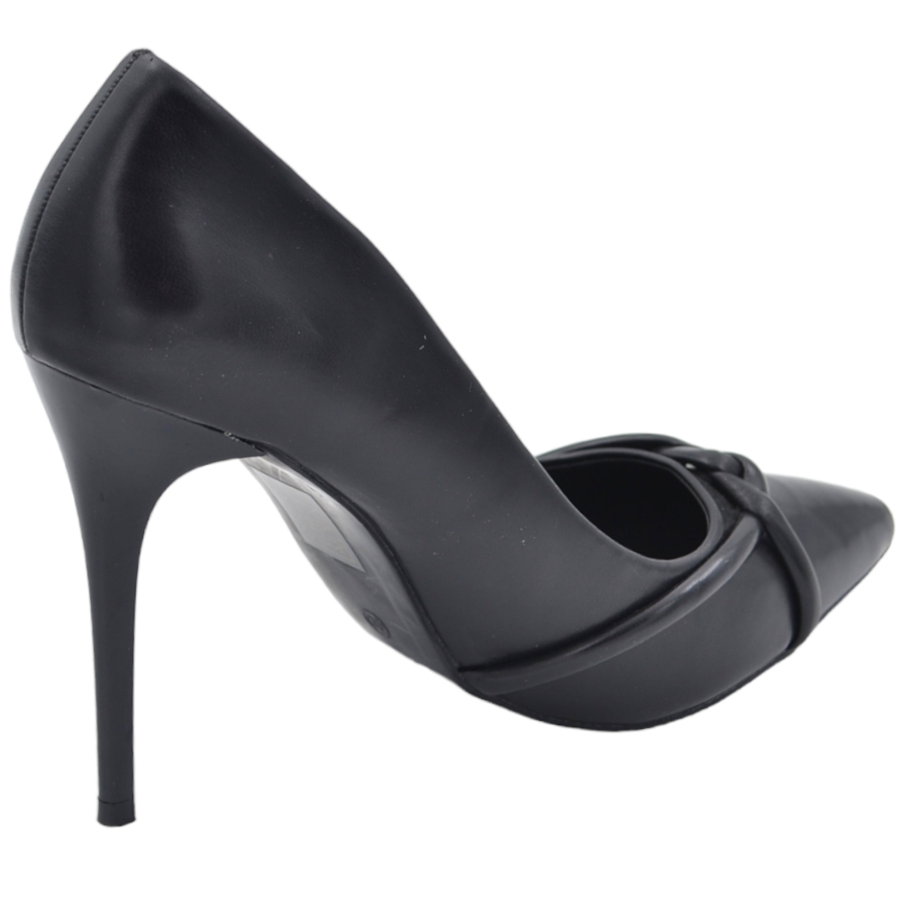 Decollete scarpa donna a punta in pelle nera con nodo in rilievo tacco sottile 12 cm elegante evento cerimonia