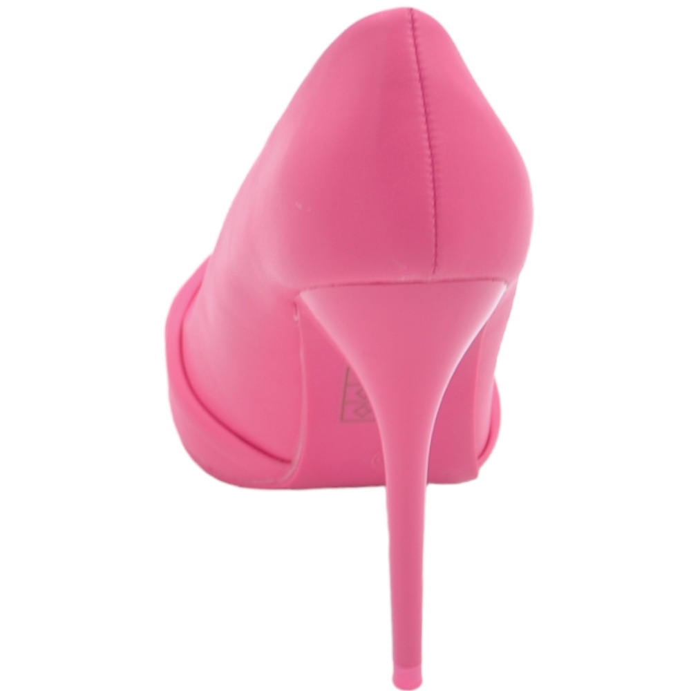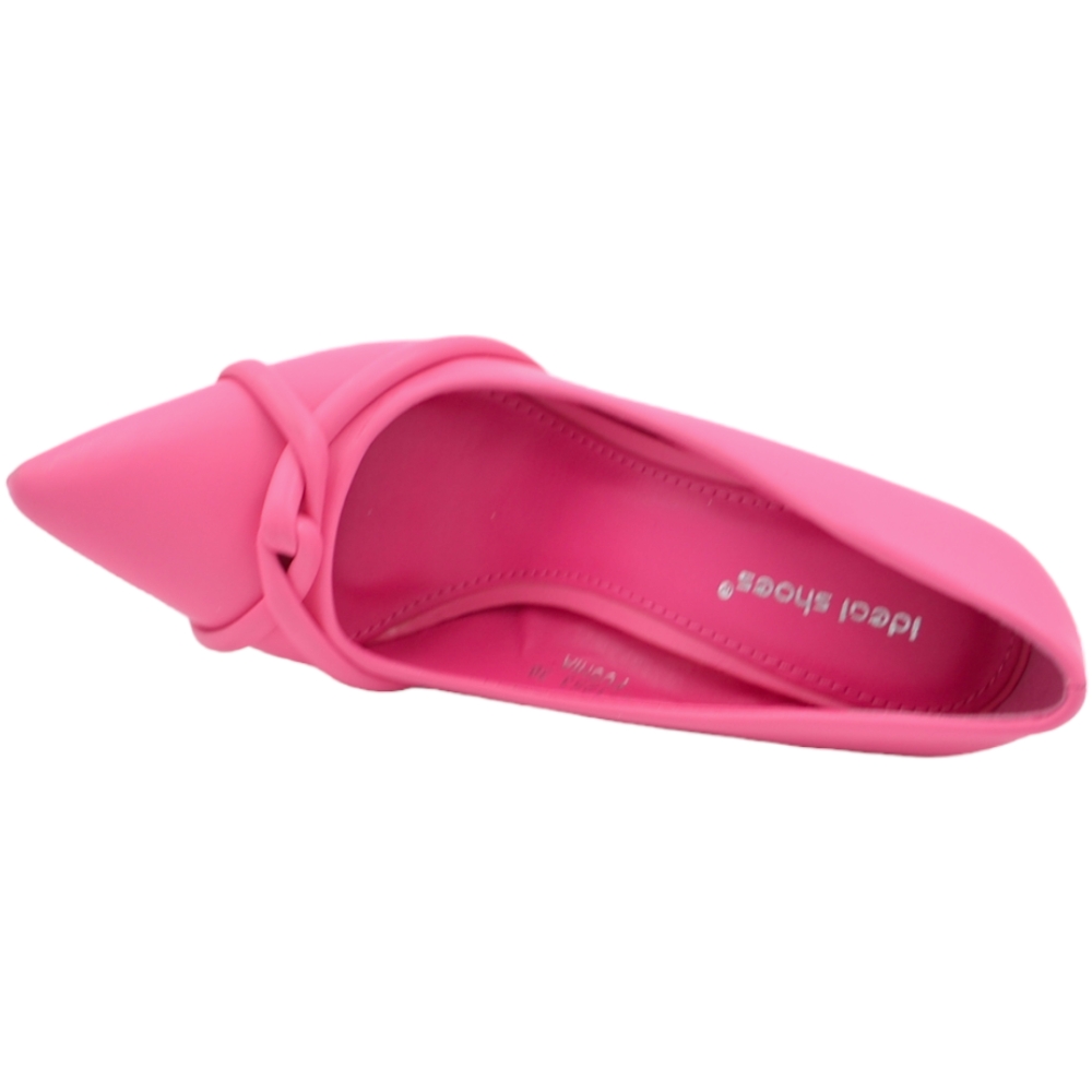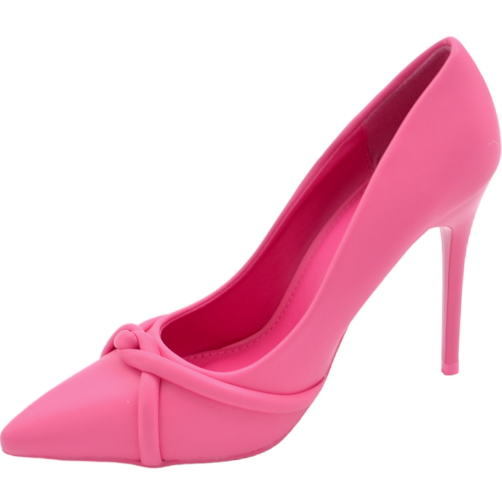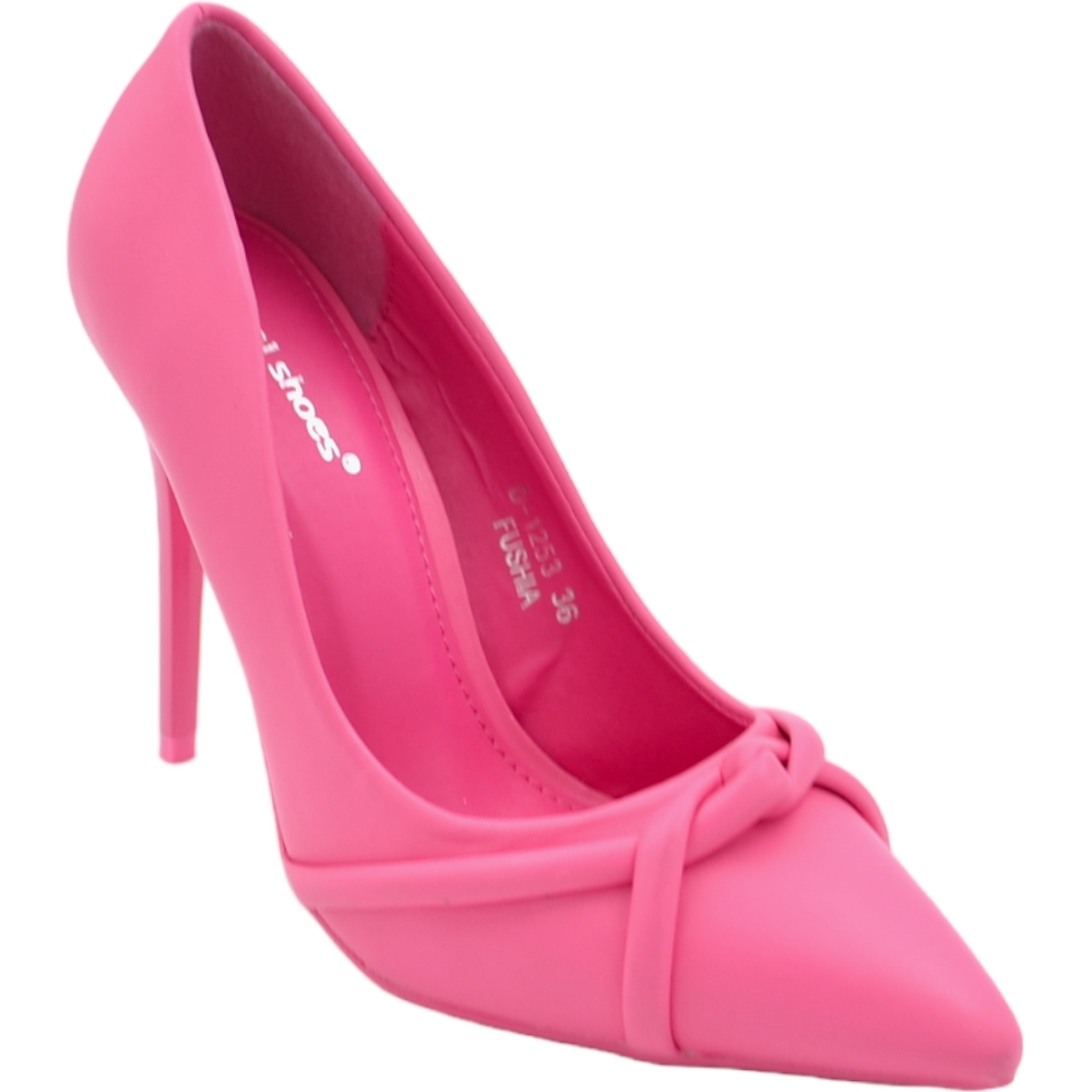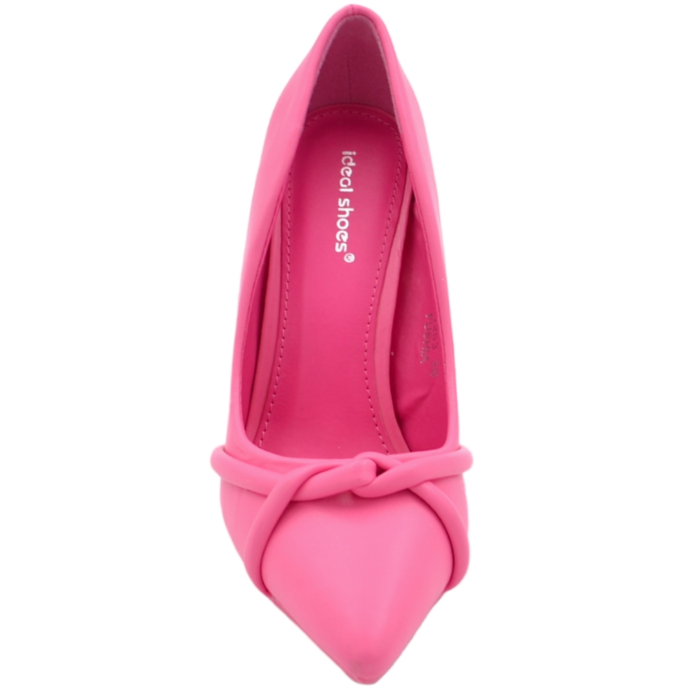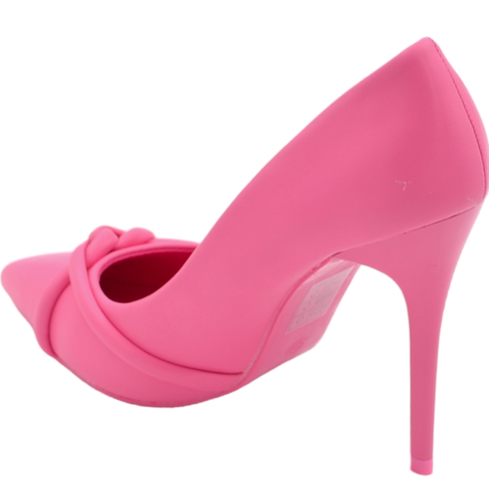 Decollete scarpa donna a punta in pelle fucsia con nodo in rilievo tacco sottile 12 cm elegante evento cerimonia