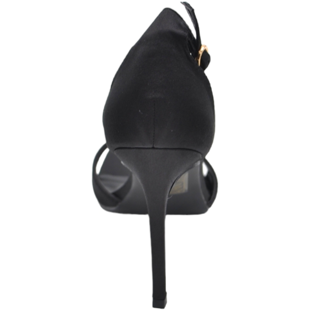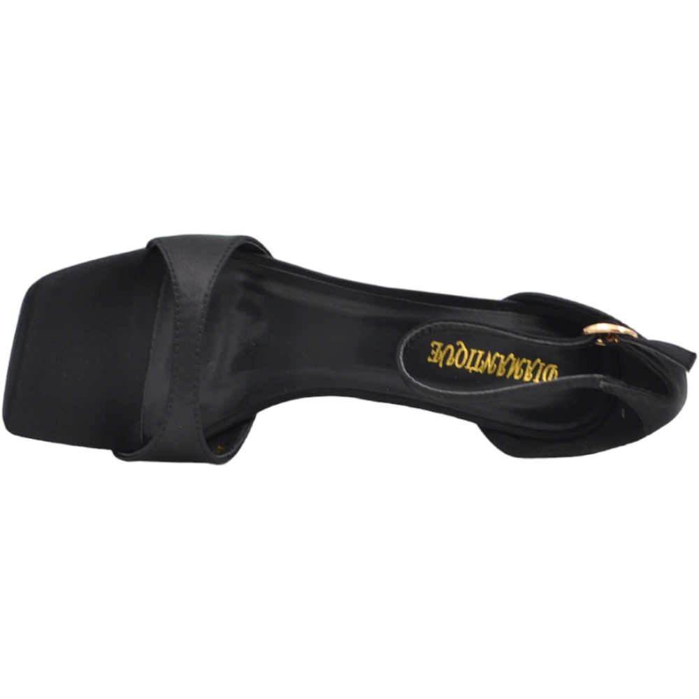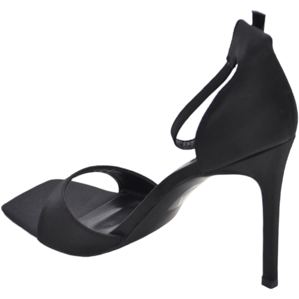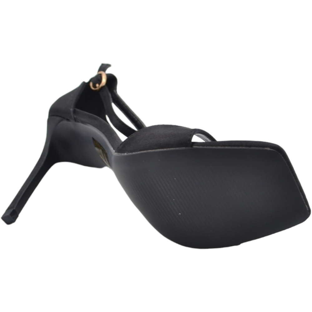SANDALO TACCO IN RASO NERO A PUNTA QUADRATA TACCO SOTTILE 12 CM CHIUSURA ALLA CAVIGLIA MODA CERIMONIA