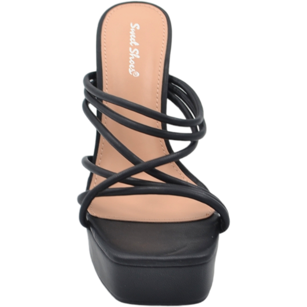 Il sandalo platform da donna è un modello realizzato in tessuto con fasce incrociate avvolgenti all'avampiede. L'interno e il sottopiede sono in comodo tessuto, la suola è in gomma. Un sandalo alla moda e confortevole, bello per le estati della donna trendy e femminile.