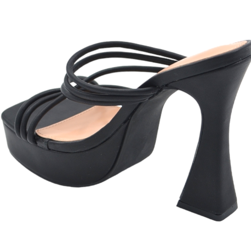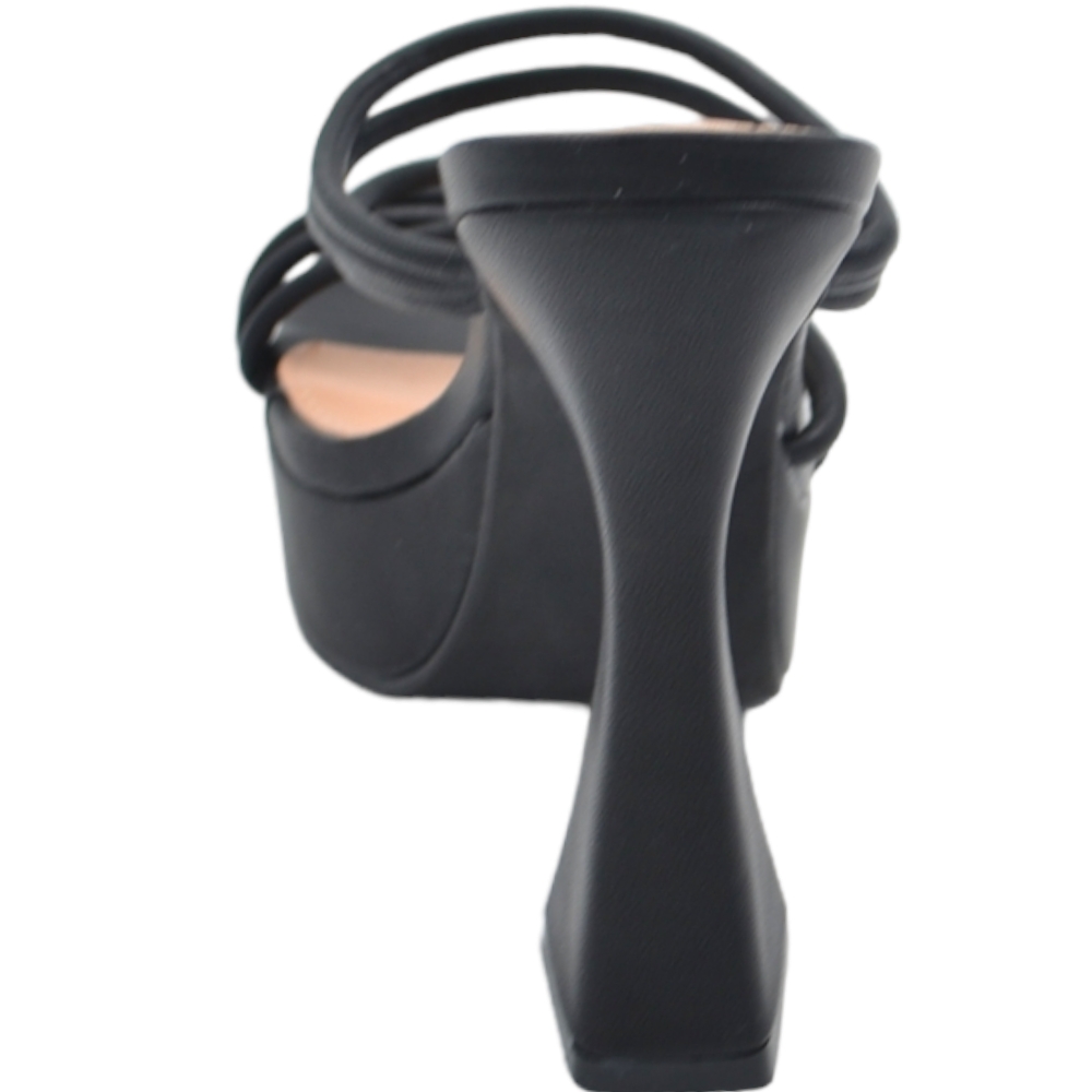 Sandalo tacco donna platform in pelle nero con plateau alto 3,5 cm e tacco clessidra 15 cm fascette incrocio avampiede