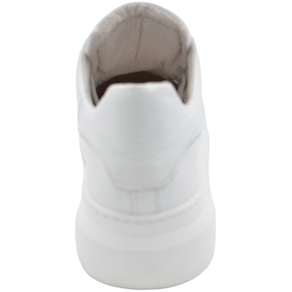Sneakers bassa linguetta centrale laminata  Uomo Limited Elastico Punta gommata vera pelle bianco .