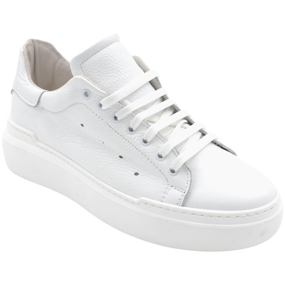 Scarpa sneakers bianca Paul 4190 uomo basic vera pelle lacci comodo fondo in gomma cuoio sportiva moda casual.