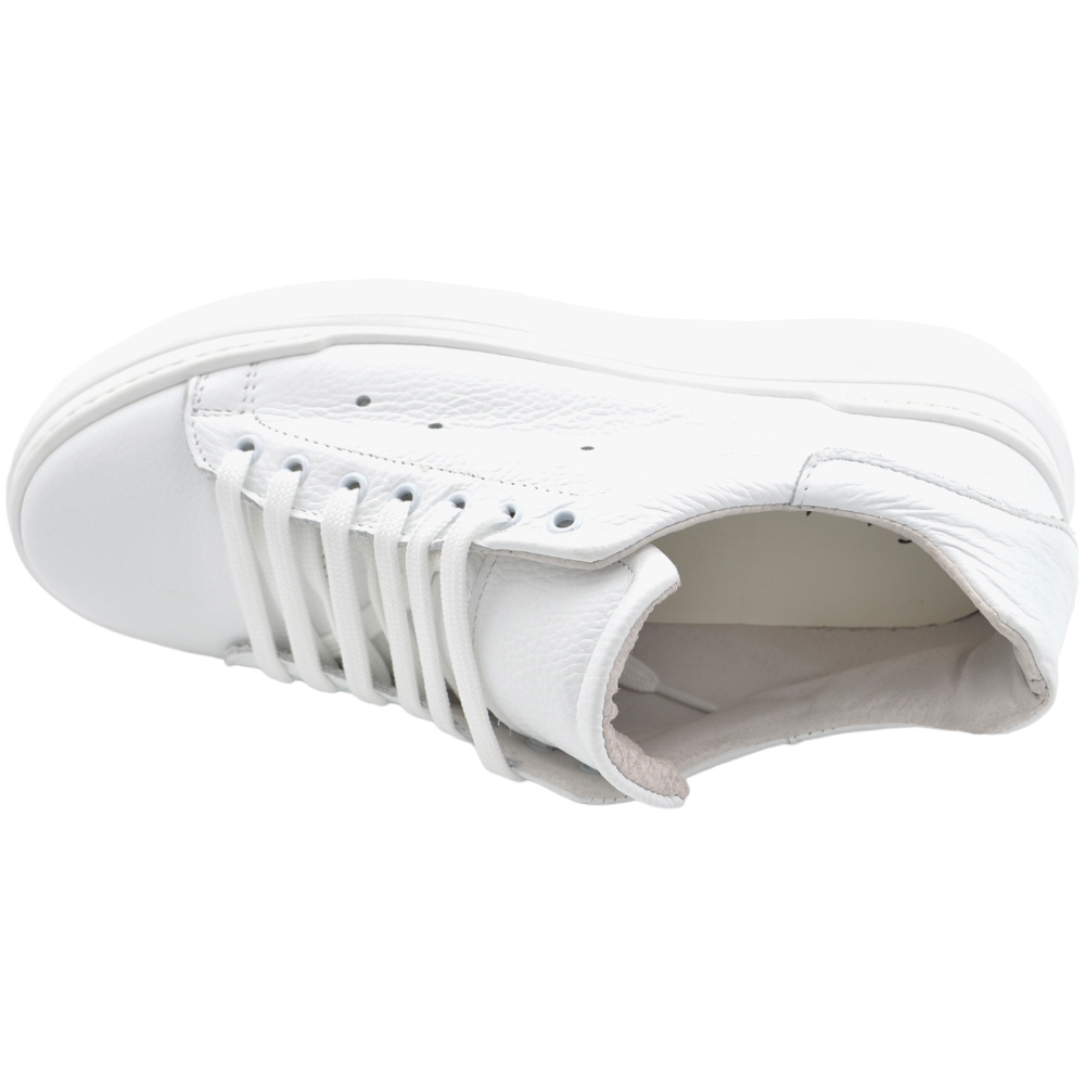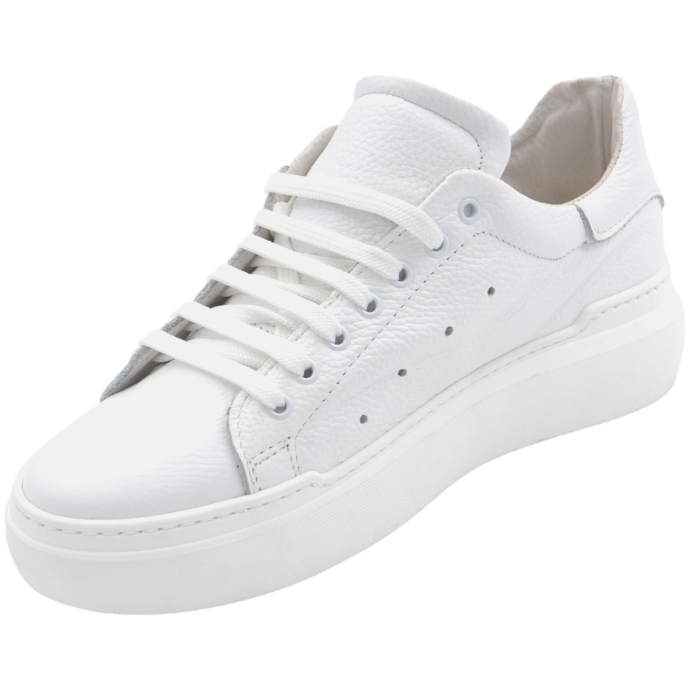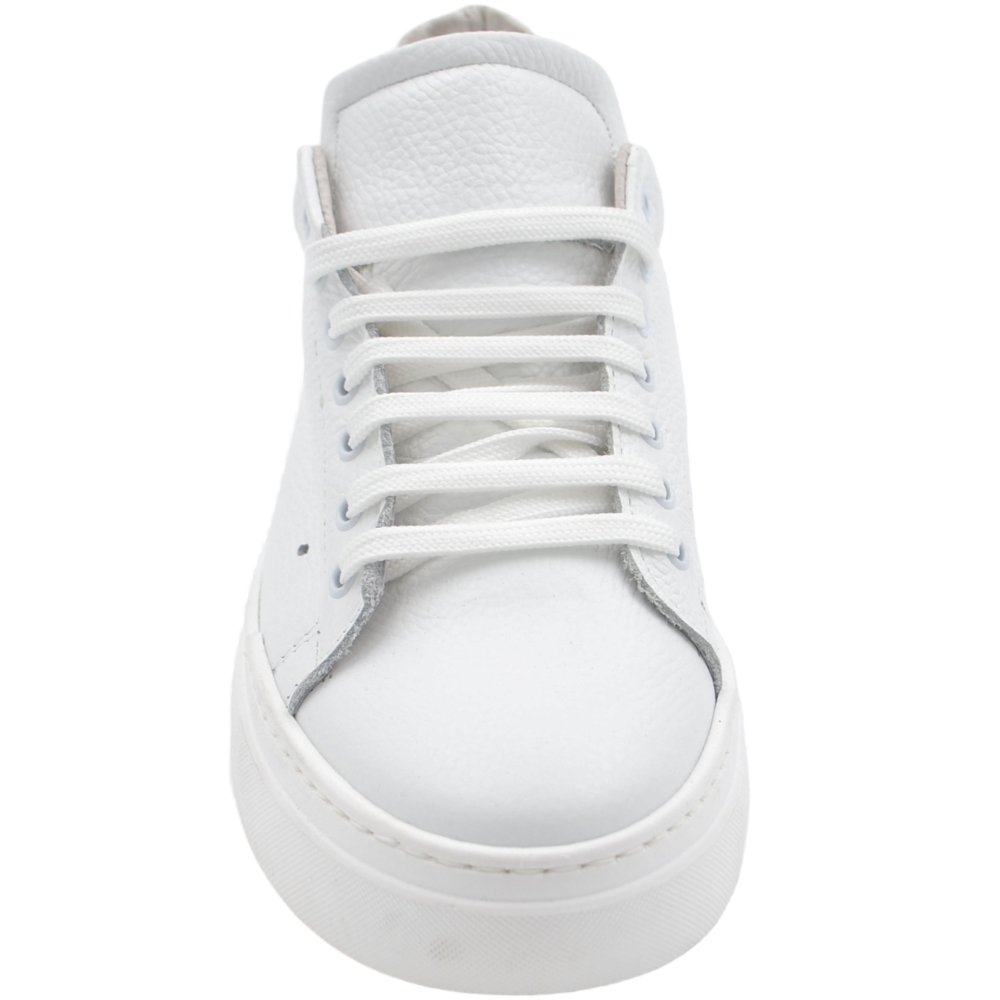 Sneakers uomo bianco in vera pelle con riporto tono su tono fondo alto 4 cm anatomico moda street made in italy
