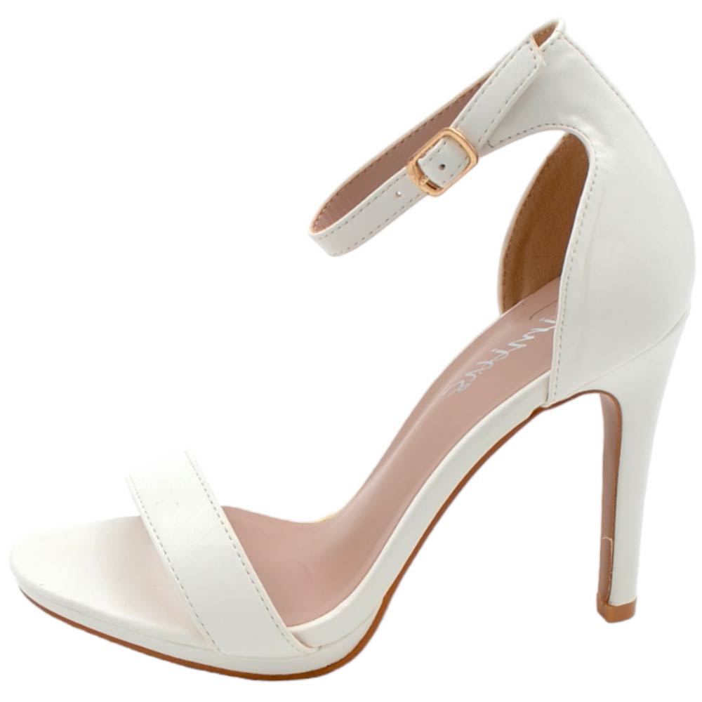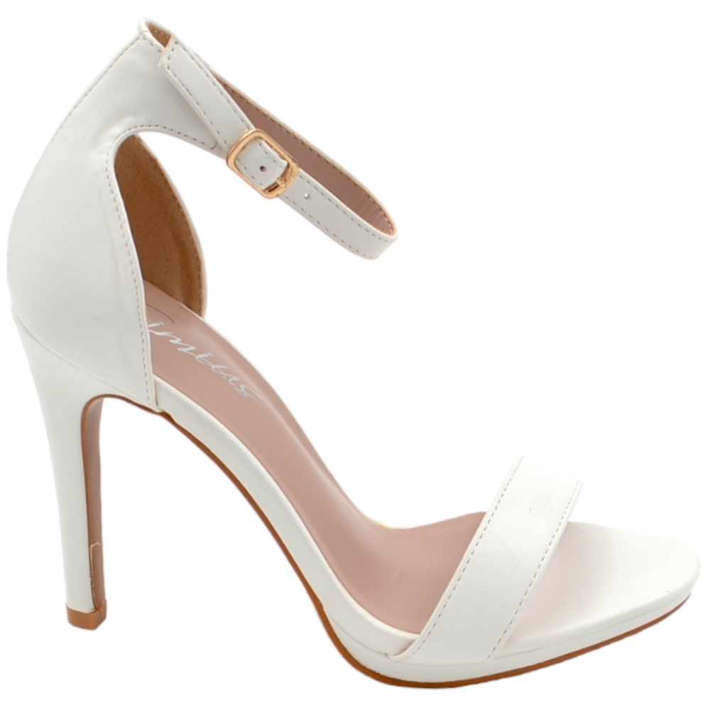 Sandali donna tacco bianco con tacco a spillo 12 cinturino alla caviglia plateau 1,5 cm basic