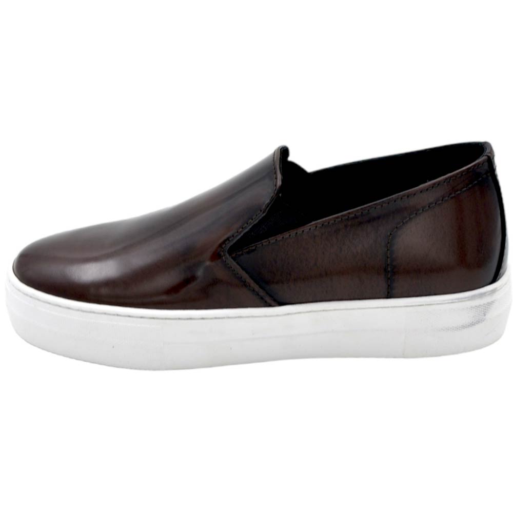 Scarpe mocassino uomo slip on in vera pelle abrasivata marrone con suola in gomma tono su tono 4 cm elastico laterale