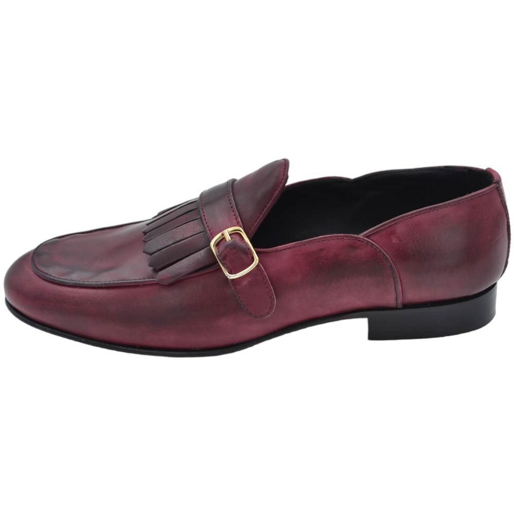 Scarpa mocassino uomo ls doppia fibbia oro vera pelle bottolato bordeaux cucita a mano fondo cuoio antiscivolo centrale