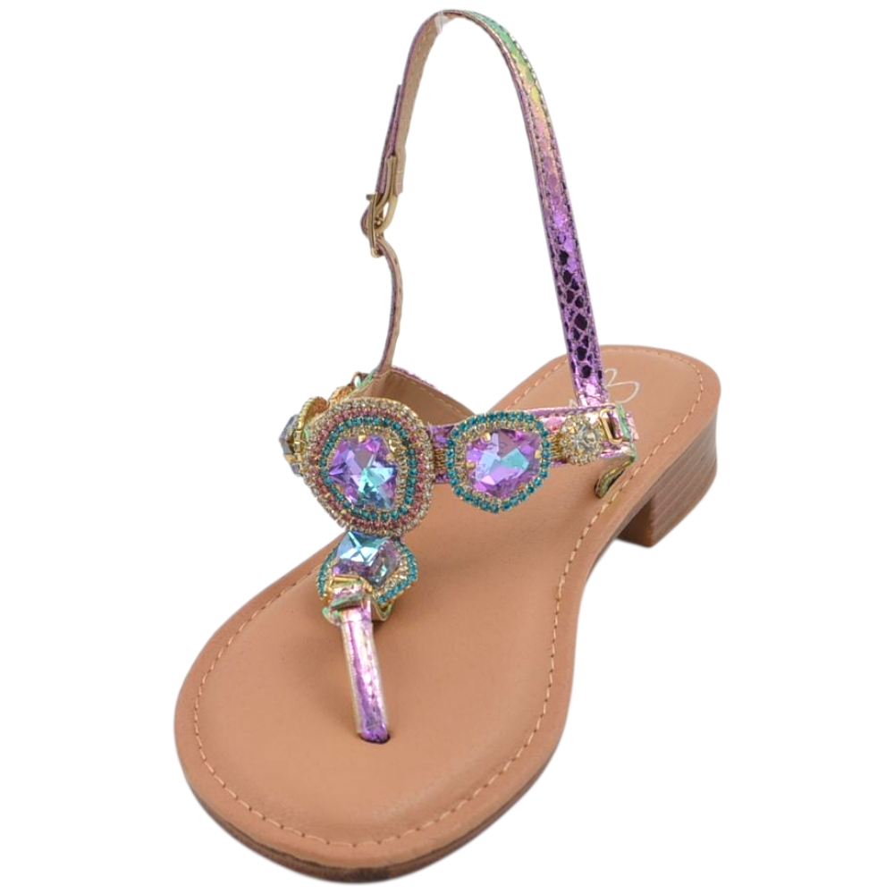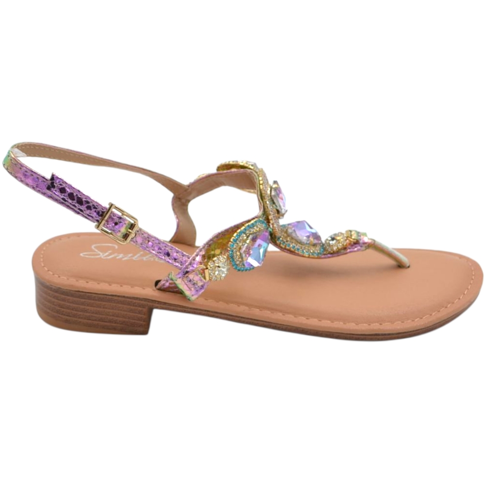 Sandalo gioiello basso donna infradito morbido dentro brillantini viola colorati tacco 2 cm regolabile antiscivolo