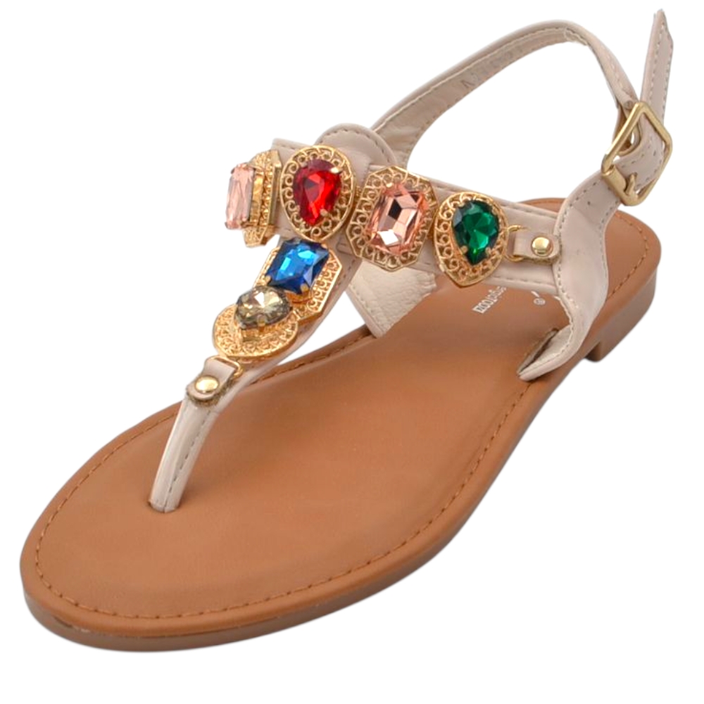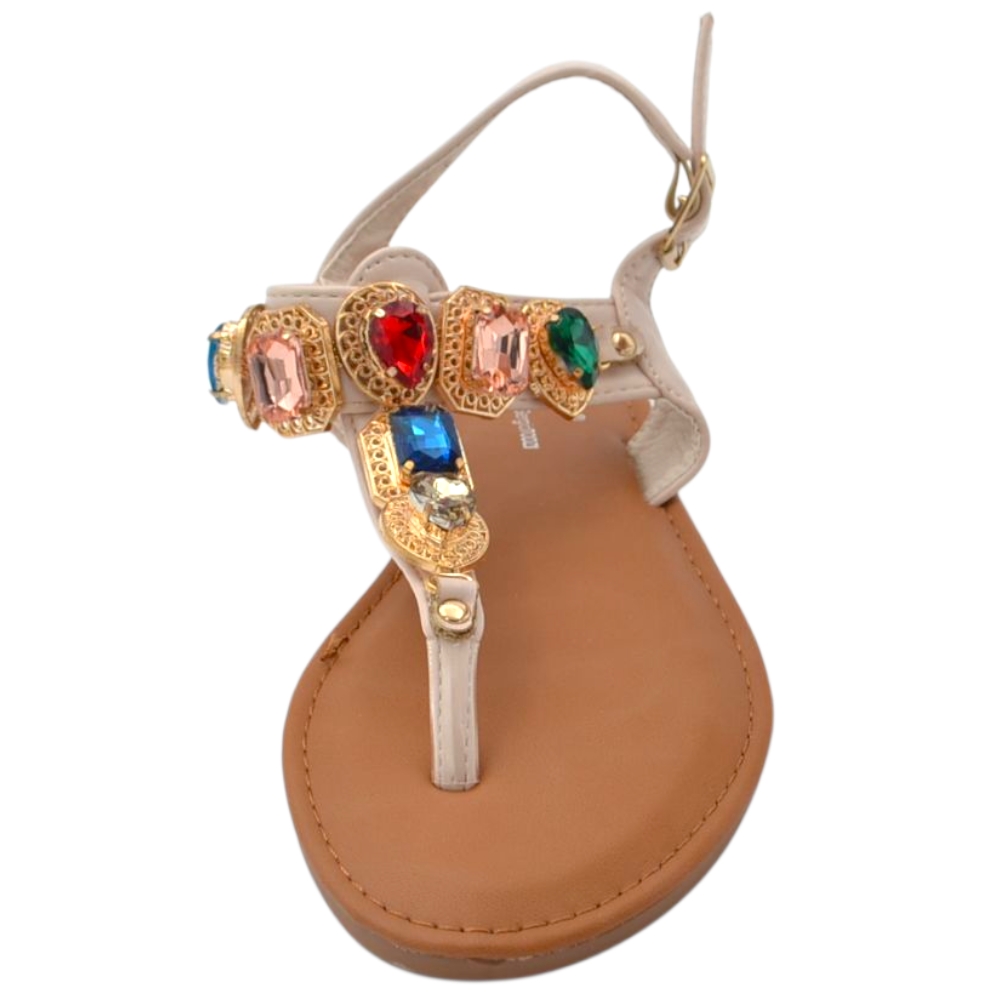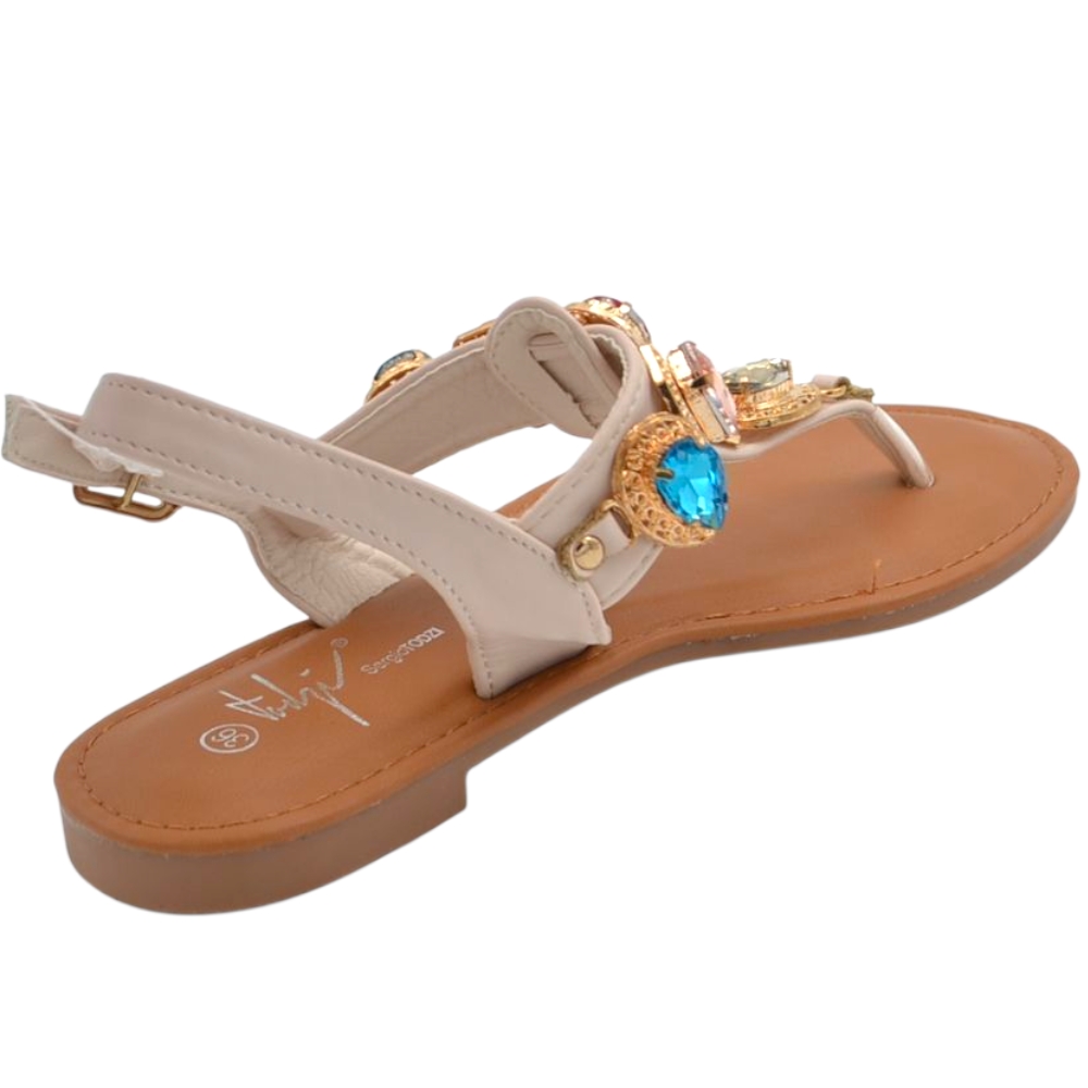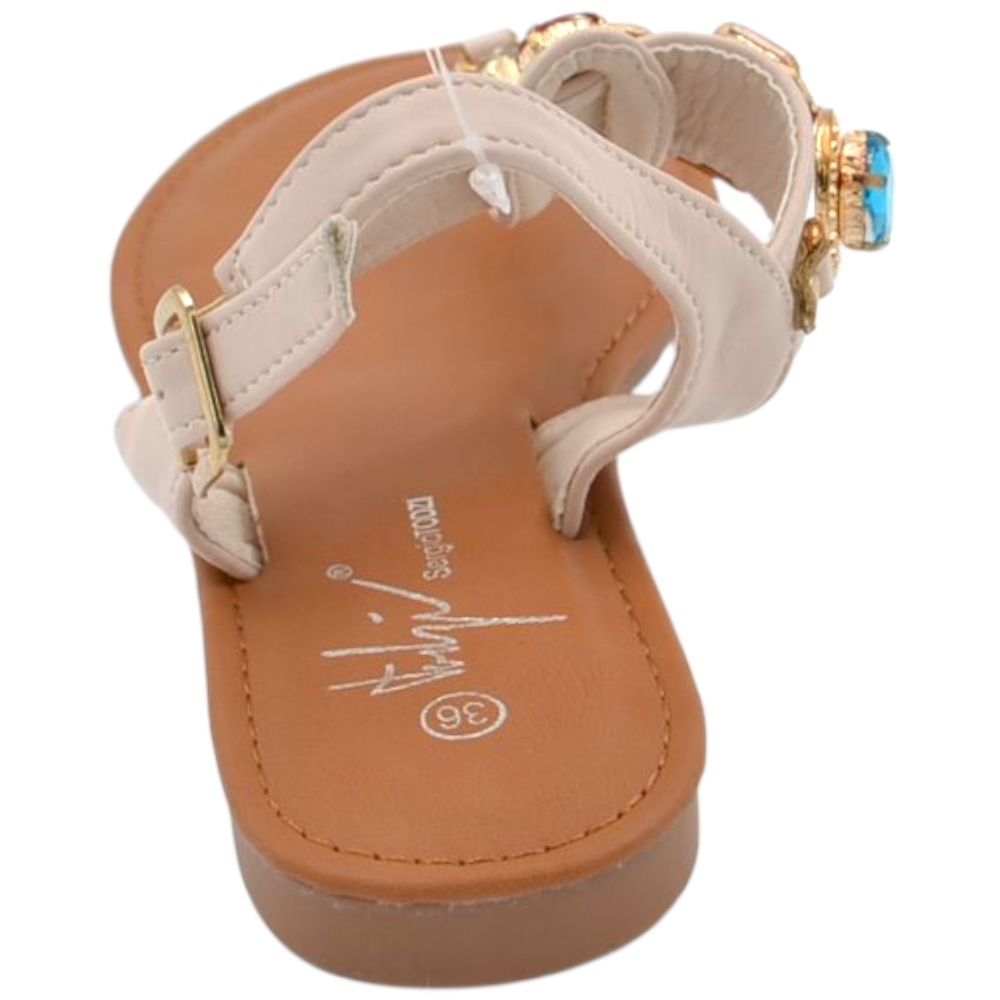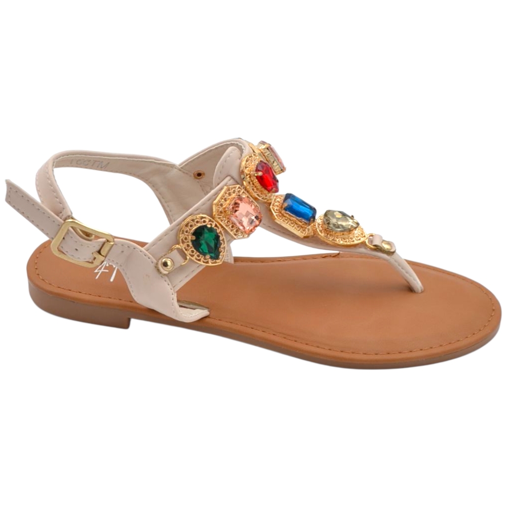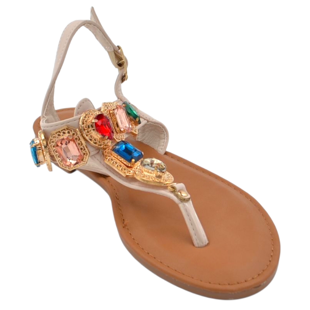 Sandalo gioiello basso donna infradito morbido dentro beige pietre colorate tacco 1 cm regolabile antiscivolo
