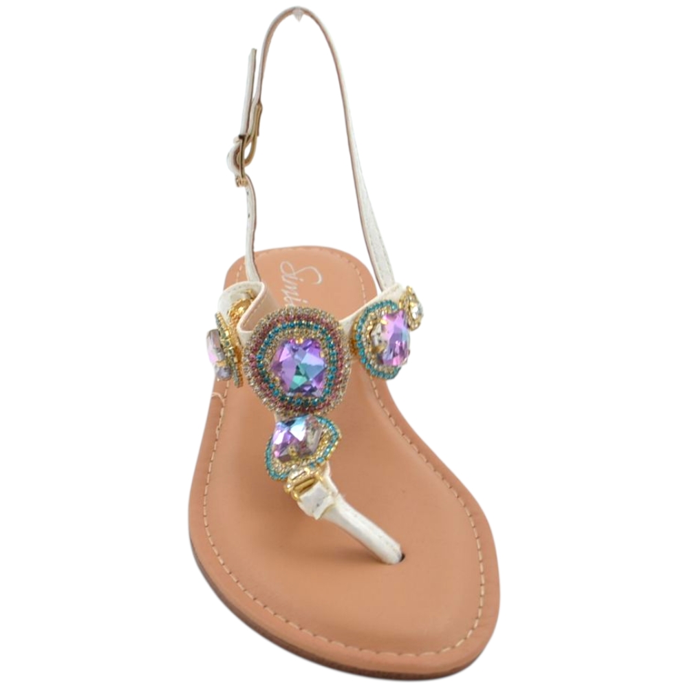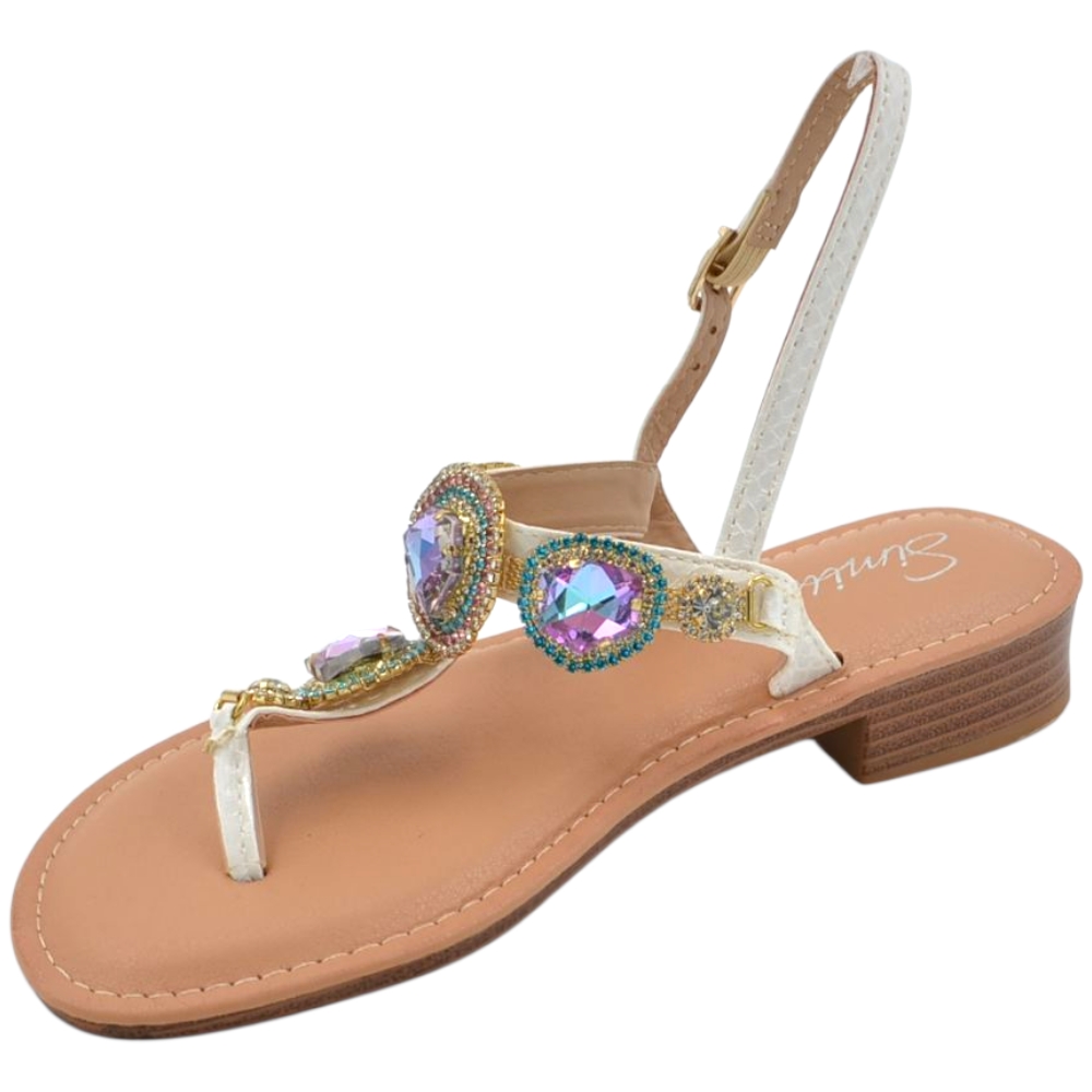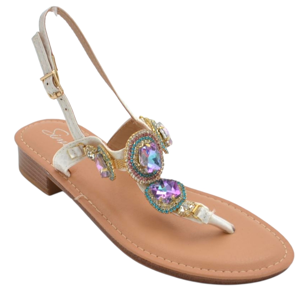 Sandalo gioiello basso donna infradito morbido dentro bianco brillantinI viola colorati tacco 2 regolabile antiscivolo