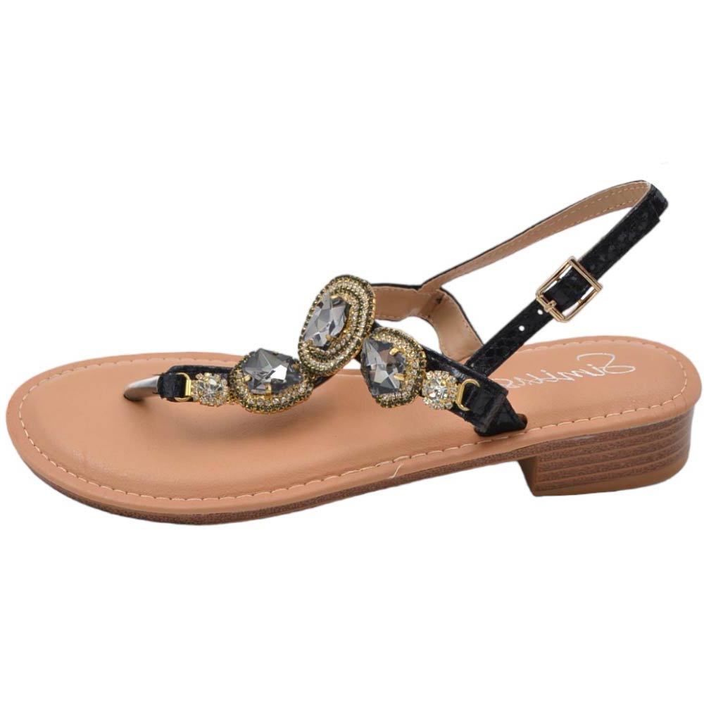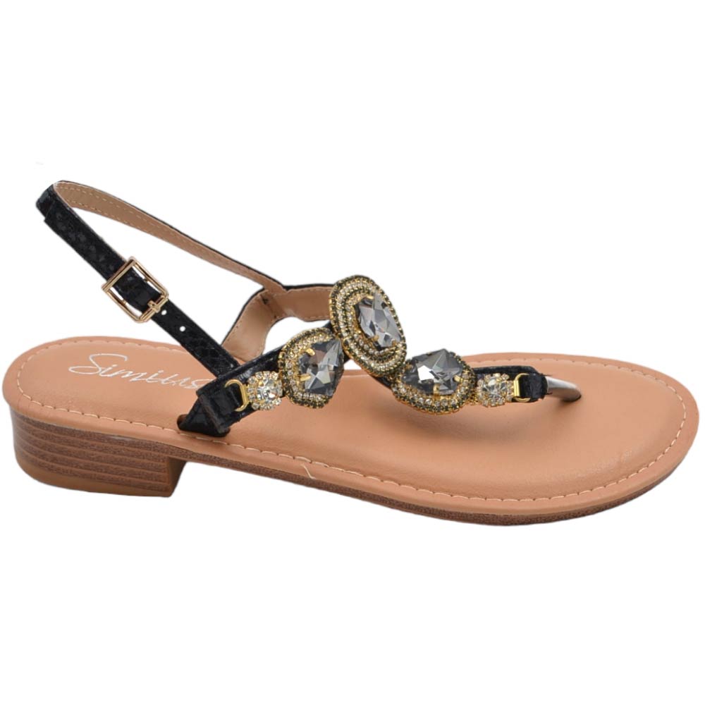 Sandalo gioiello basso donna infradito morbido dentro brillantini nero colorati tacco 2 cm regolabile antiscivolo