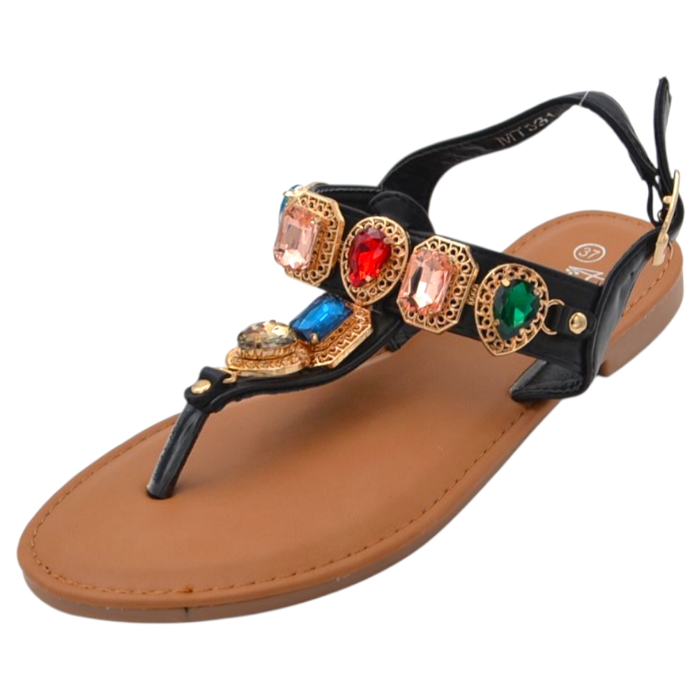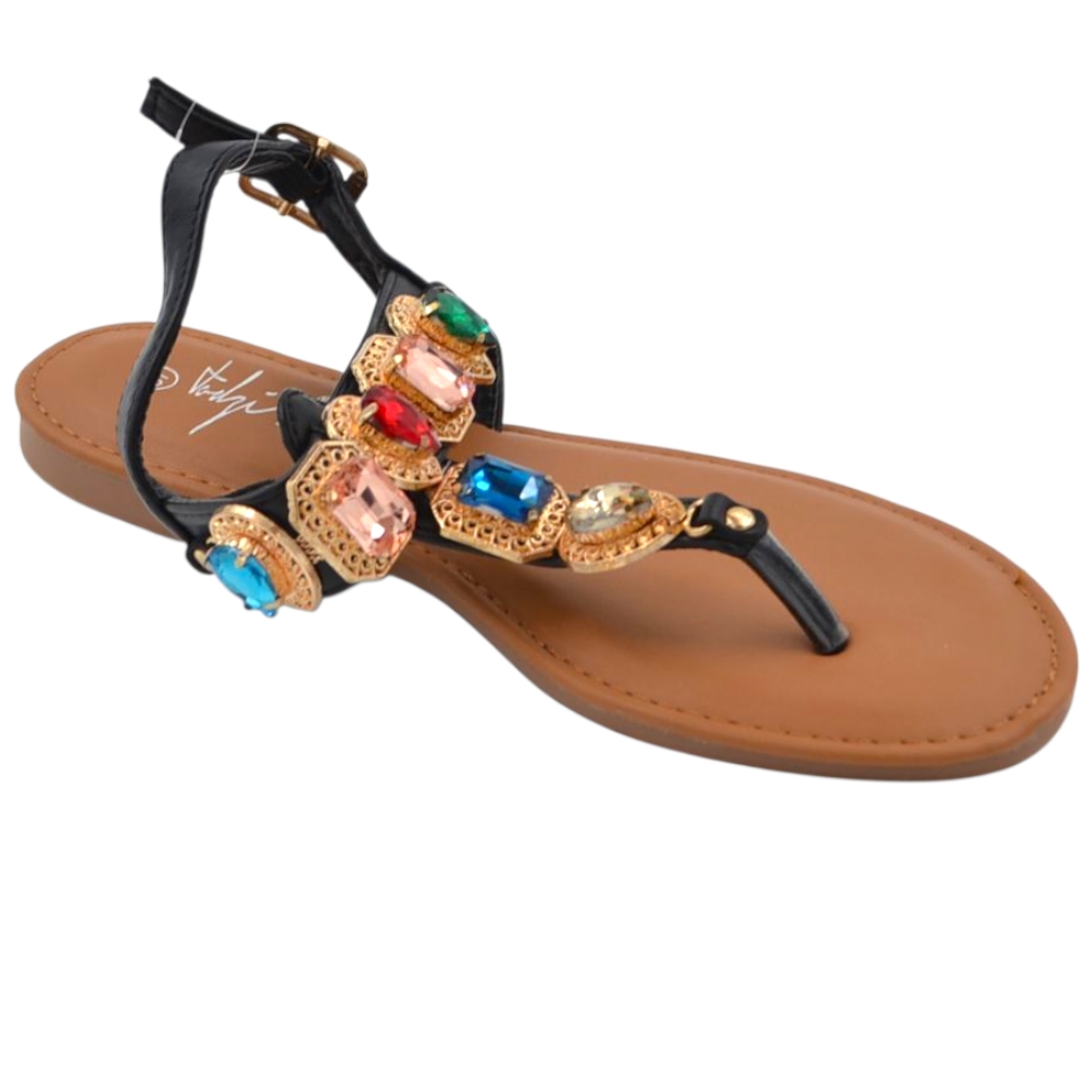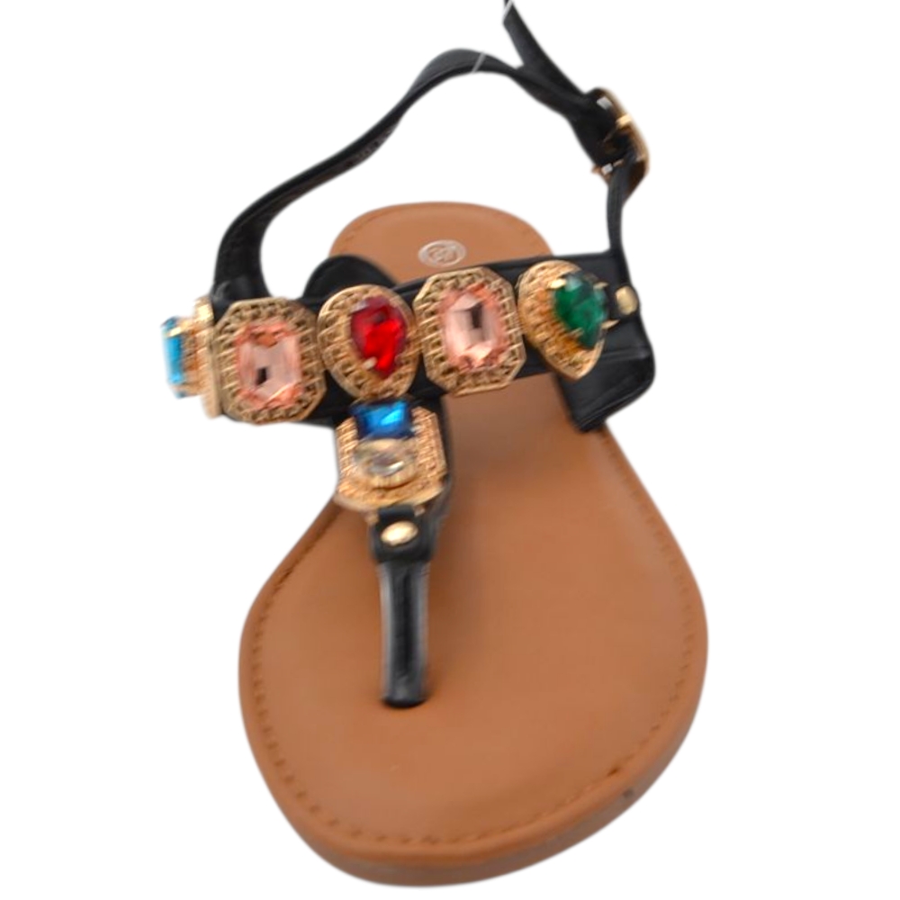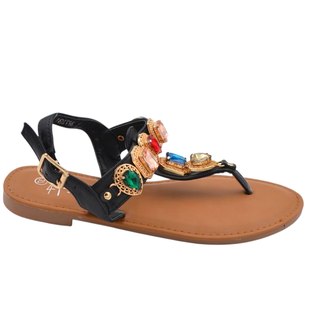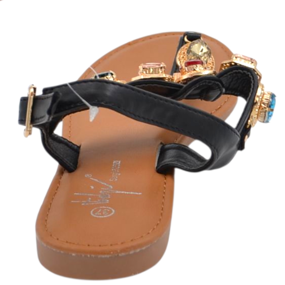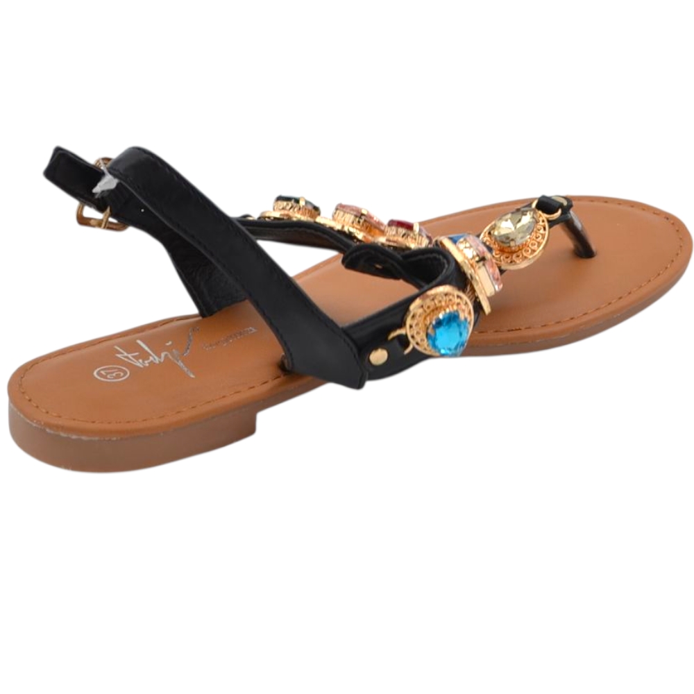 Sandalo gioiello basso donna infradito morbido dentro nero pietre colorate tacco 1 cm regolabile antiscivolo