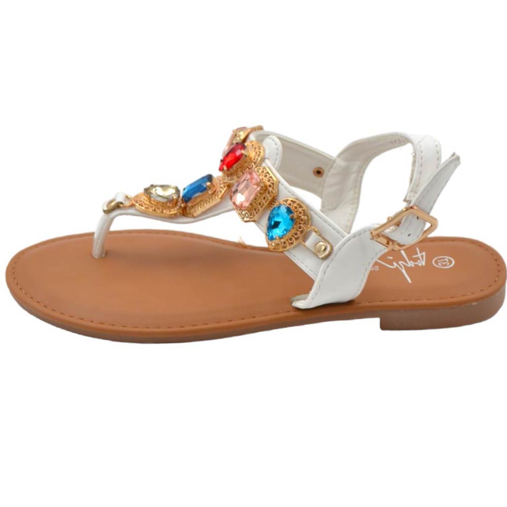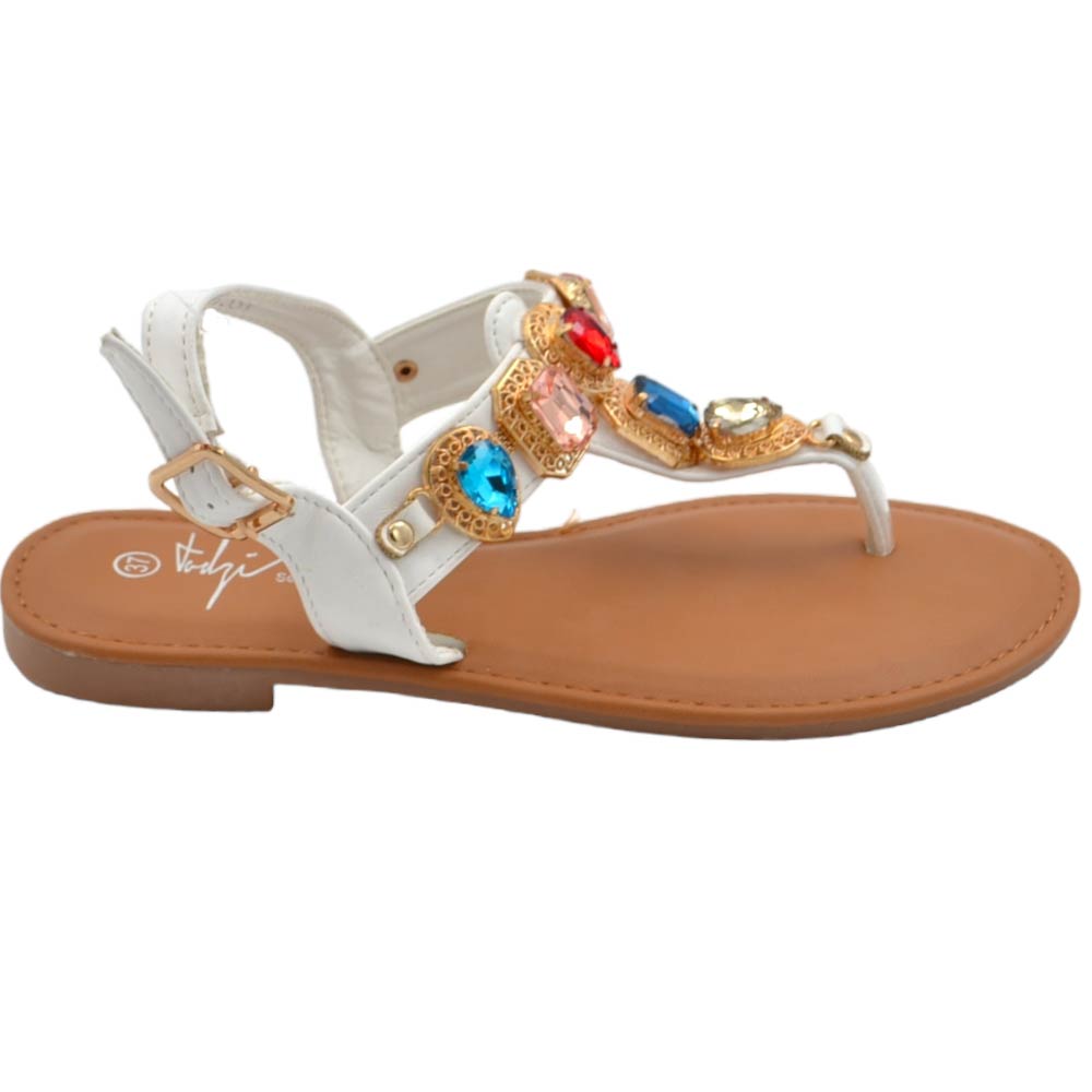 Sandalo gioiello basso donna infradito morbido dentro bianco pietre colorate tacco 1 cm regolabile antiscivolo