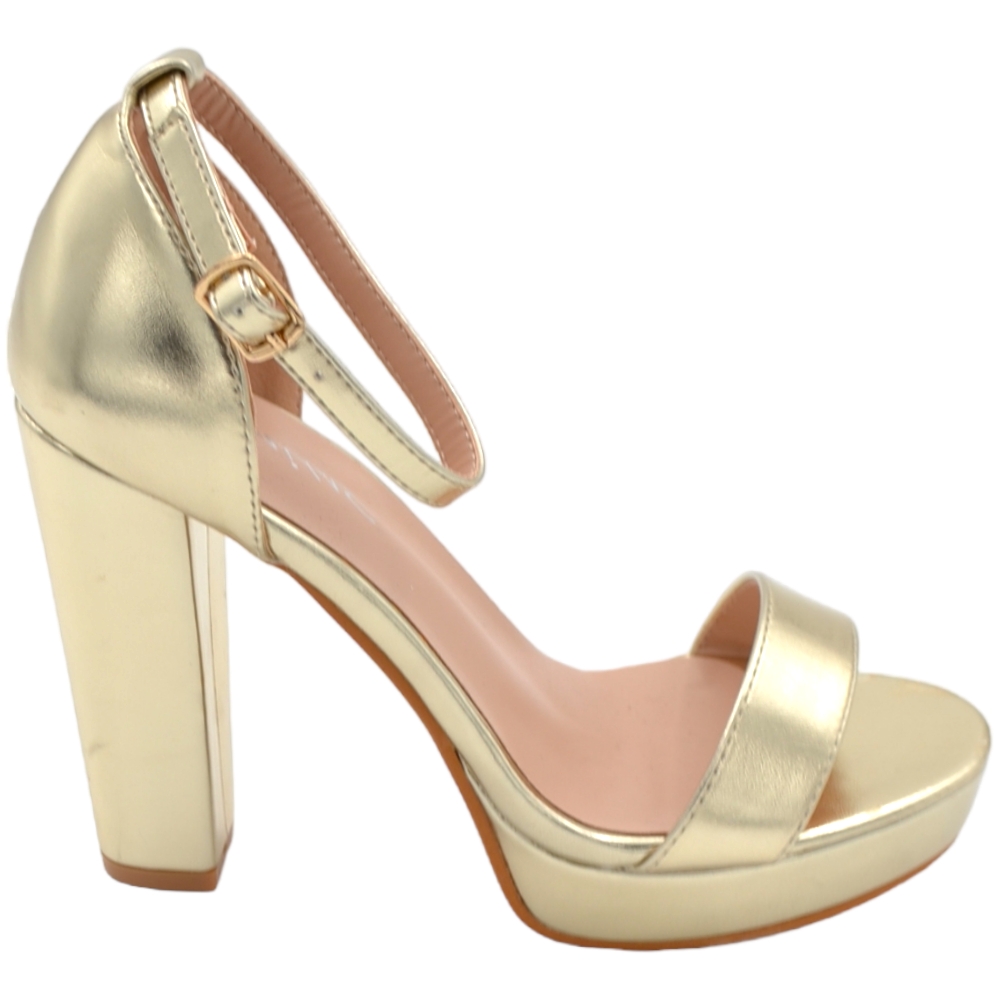 Sandali donna in pelle oro con tacco alto doppio 12 cm e plateau 3 cm cinturino alla caviglia regolabile