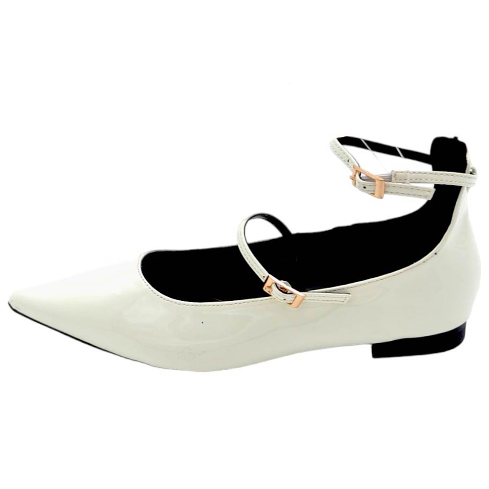Scarpe ballerine donna bianche a punta lucida con cinturini raso terra moda comfort fondo antiscivolo